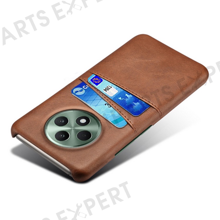 For Oppo Reno12 F 5G Case Dual Card Slots PU Leather + Hard PC Phone Cover - Brown
