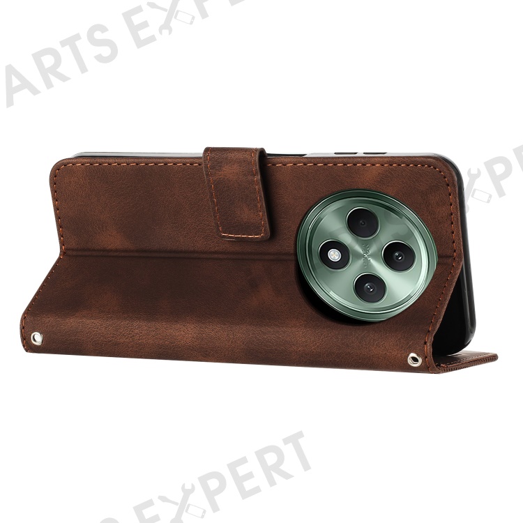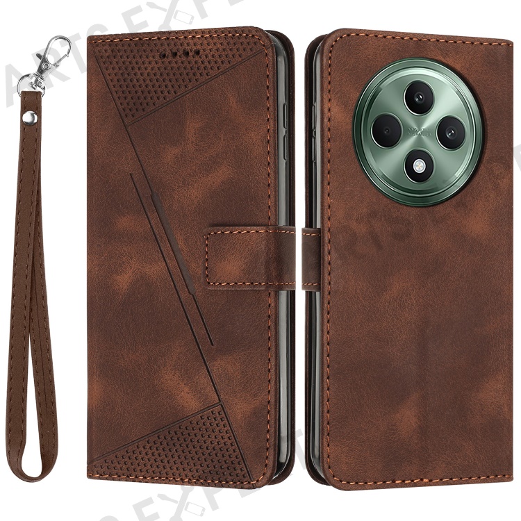 For Oppo Reno12 F 5G Case Triangle Line Pattern PU Leather Phone Cover - Brown