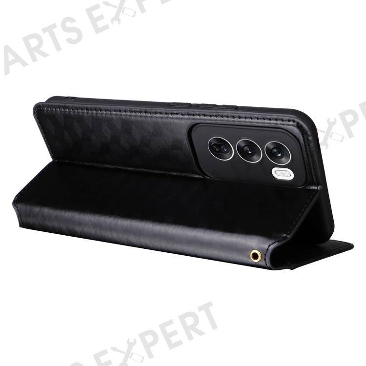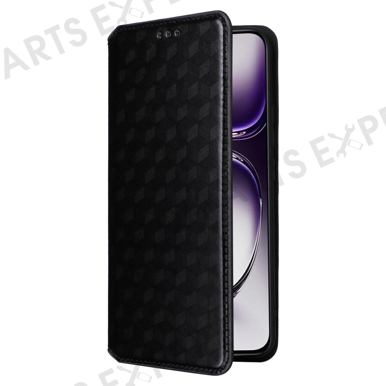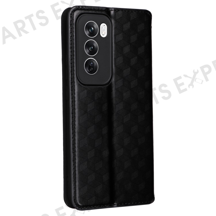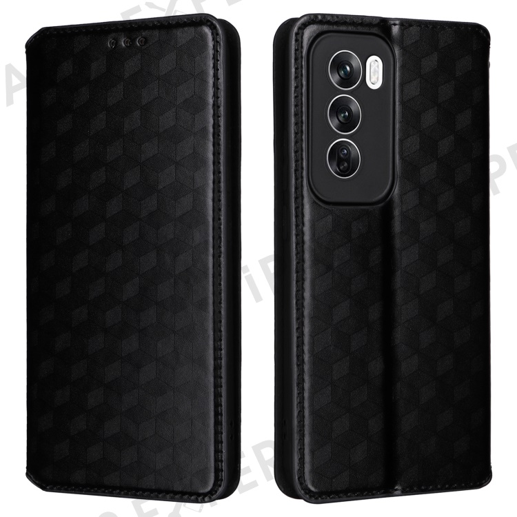 For Oppo Reno12 Pro 5G (Global) Case Rhombus Leather Flip Phone Cover - Black
