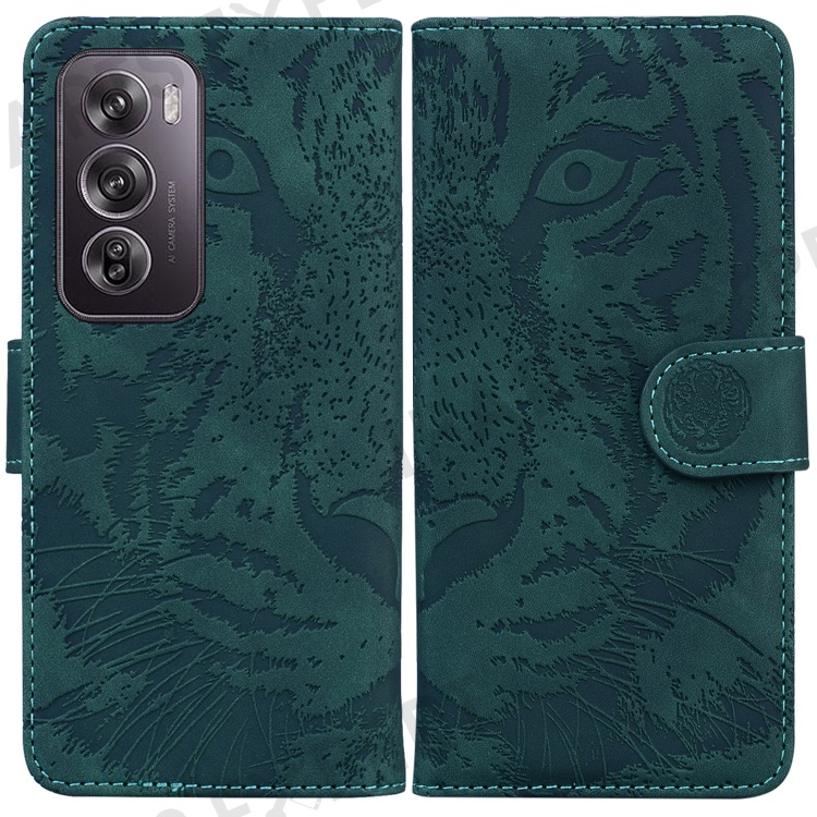 For Oppo Reno12 Pro 5G (Global) Phone Case Tiger Imprint Leather Wallet Cover - Green