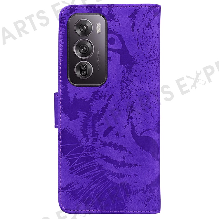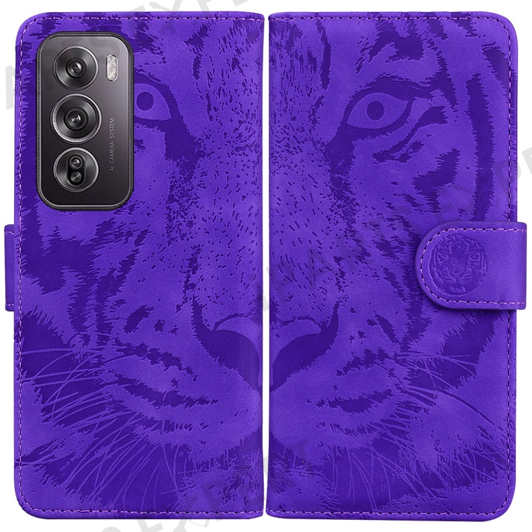For Oppo Reno12 Pro 5G (Global) Phone Case Tiger Imprint Leather Wallet Cover - Purple