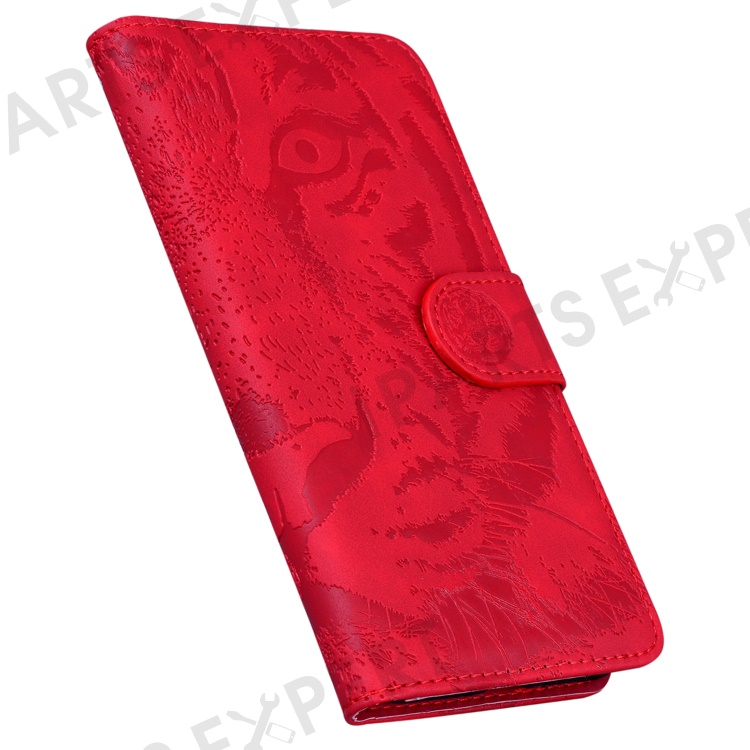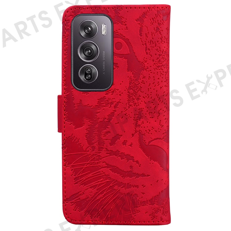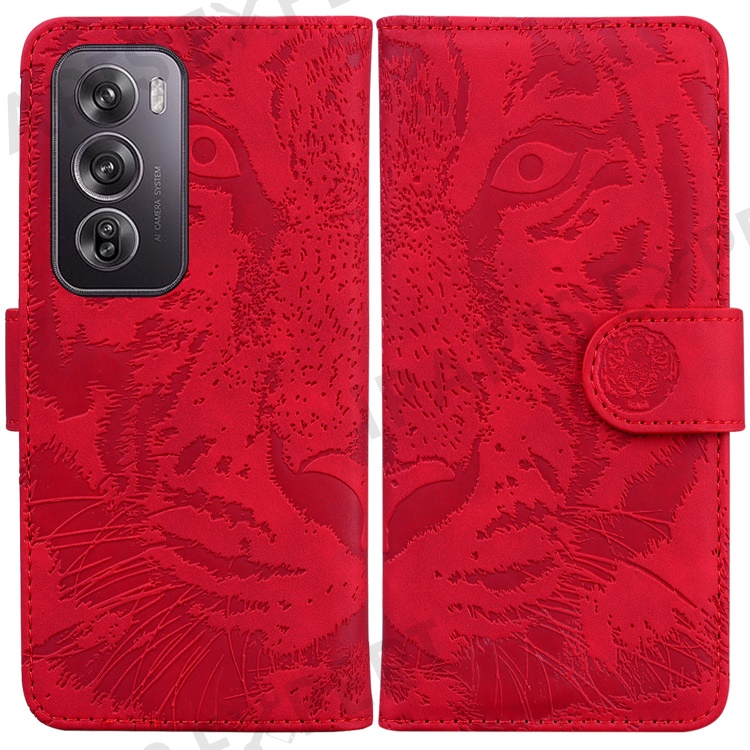 For Oppo Reno12 Pro 5G (Global) Phone Case Tiger Imprint Leather Wallet Cover - Red