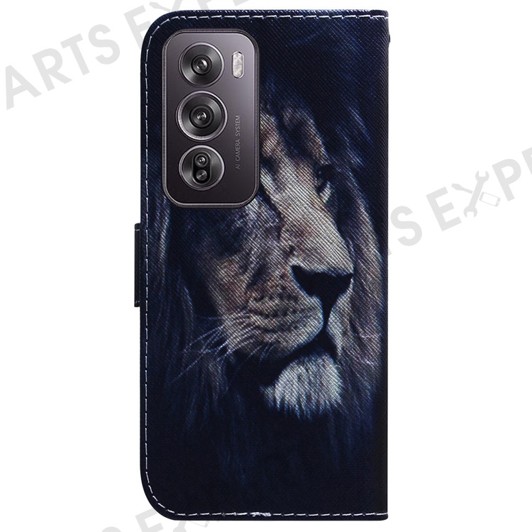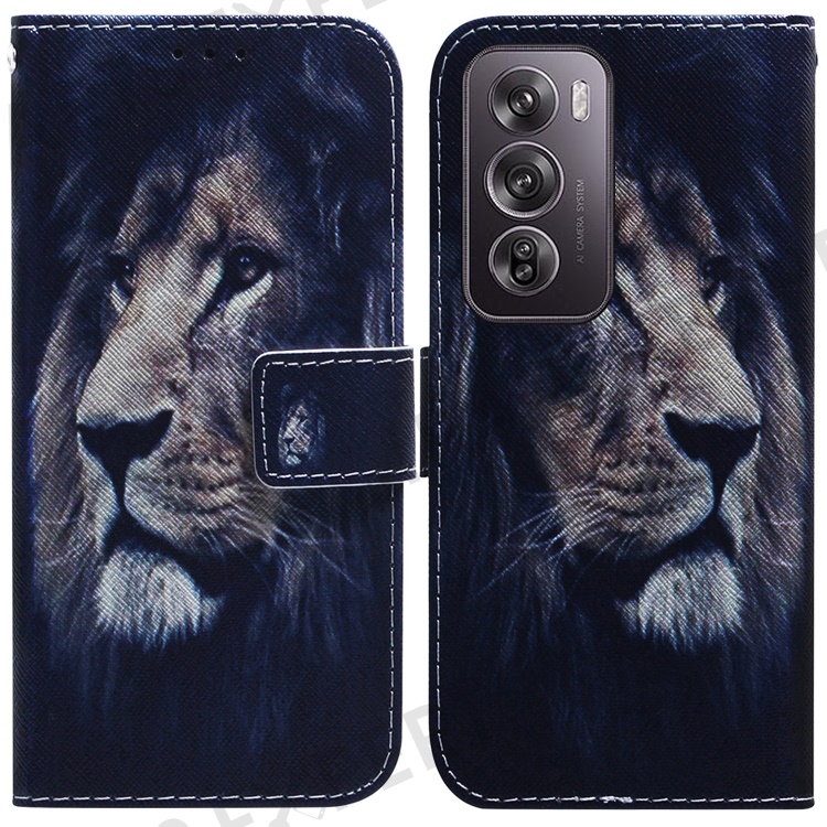 For Oppo Reno12 Pro 5G (Global) Wallet Case Pattern Print Leather Phone Cover - Lion