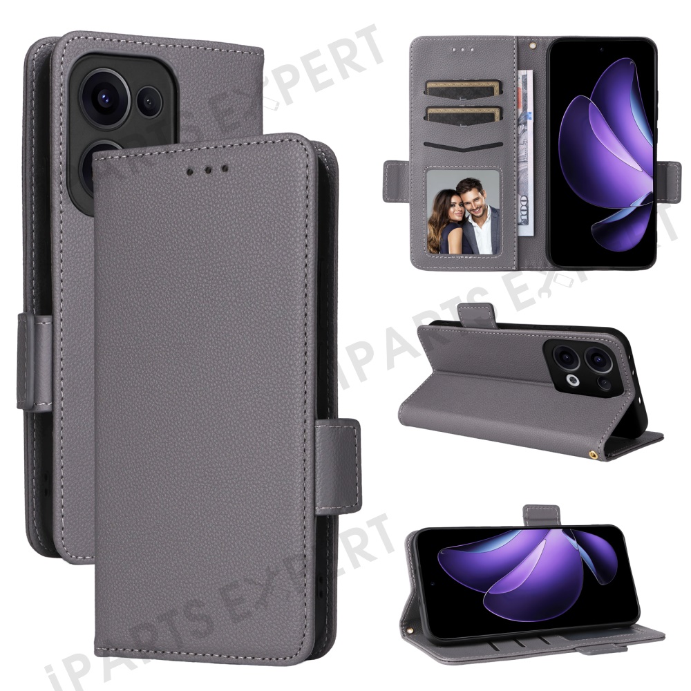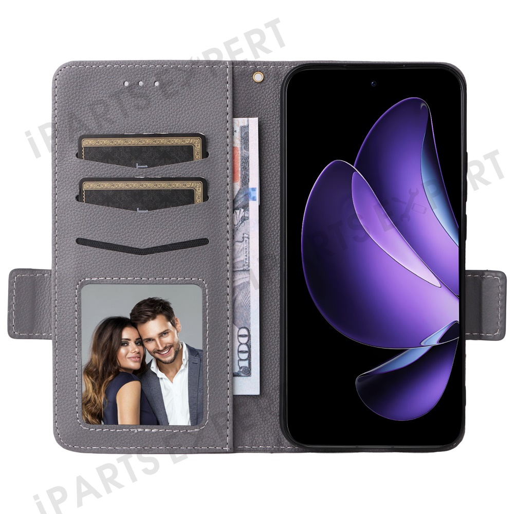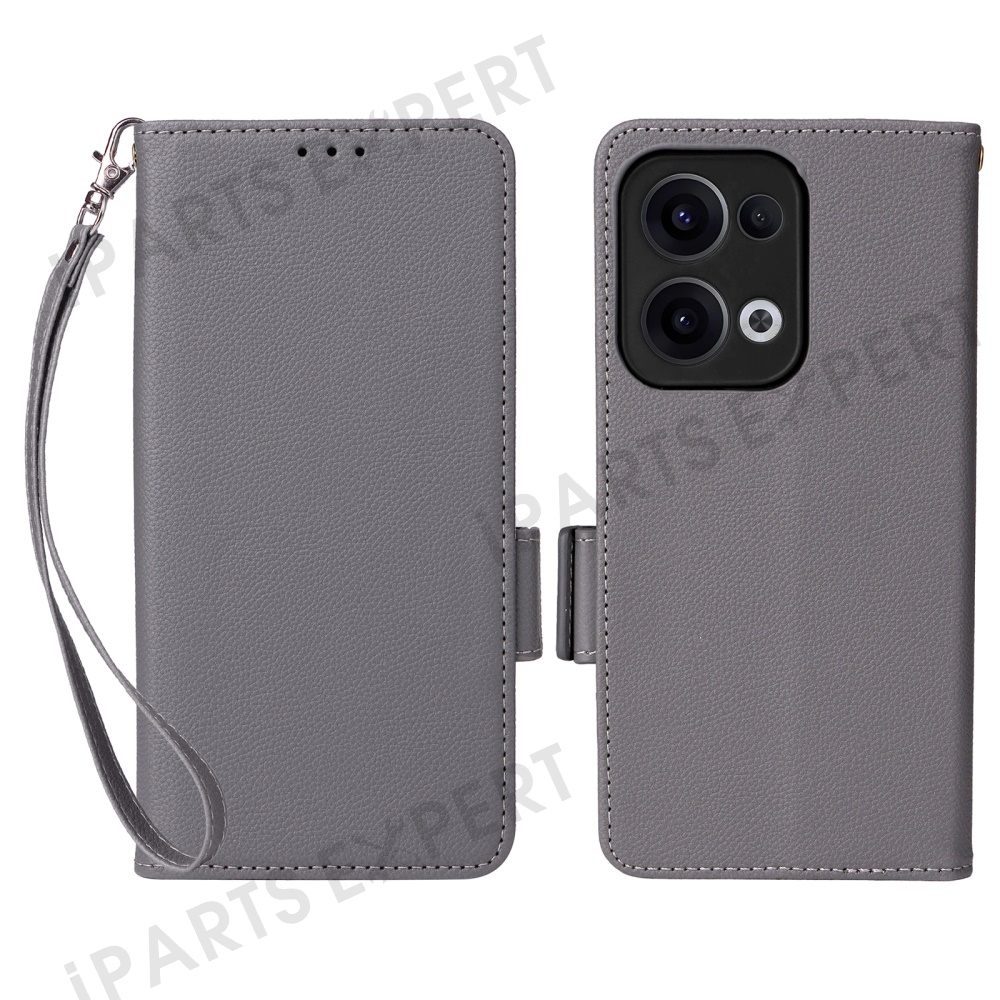 For Oppo Reno13 5G (Global) Case with Wrist Strap Litchi Texture PU Leather Wallet Phone Cover - Grey