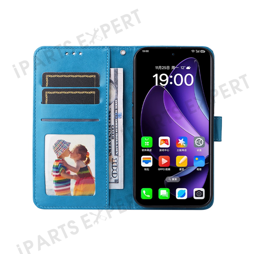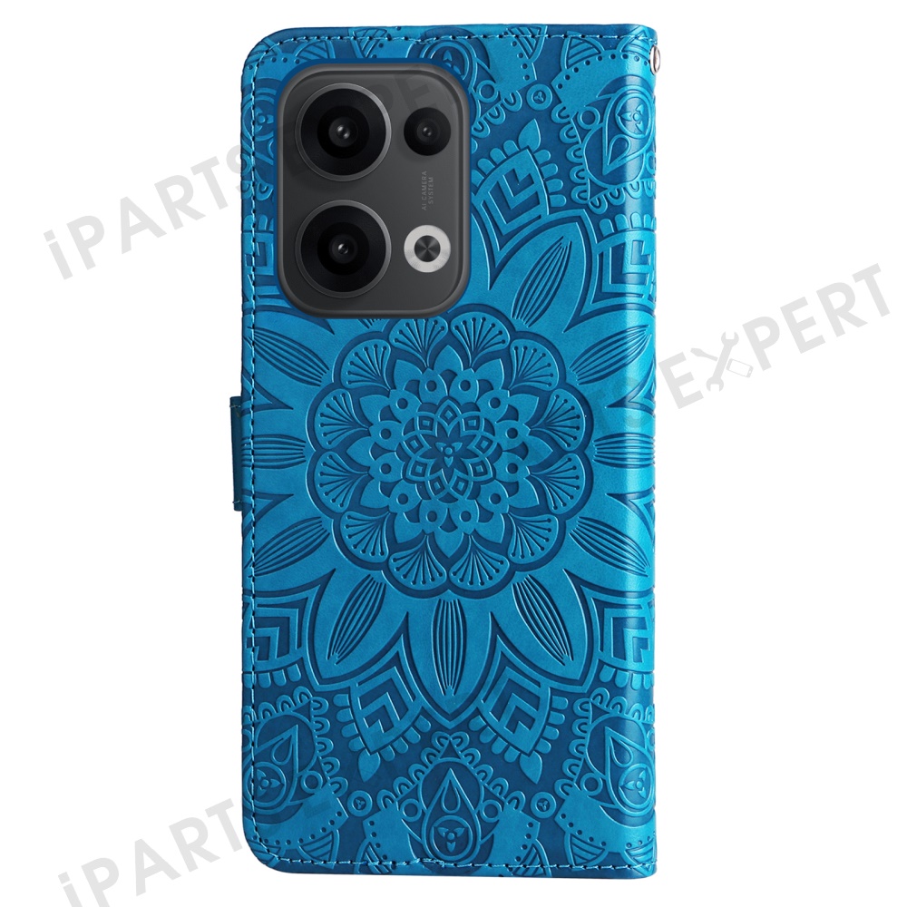 For Oppo Reno14 F 5G / Reno14 5G (Global) / Reno13 5G (Global) Case Sunflower Imprint Leather Wallet Phone Cover - Blue