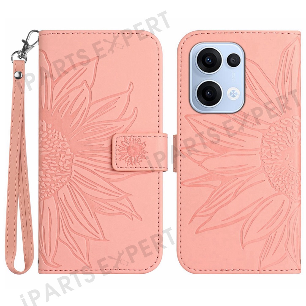 For Oppo Reno13 5G (Global) Case Sunflower Imprint Leather Wallet Phone Cover with Wrist Strap - Light Pink