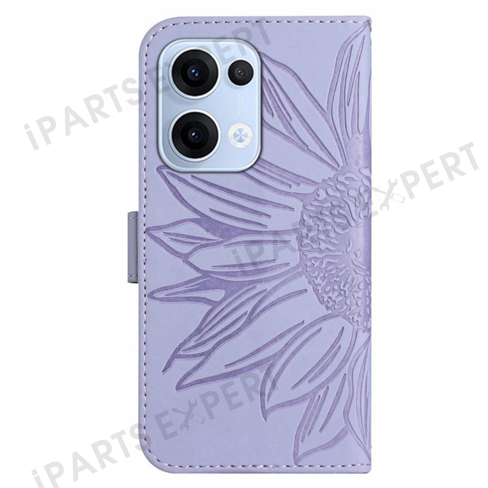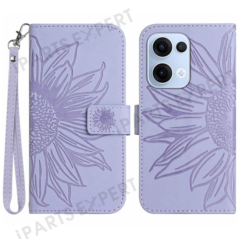 For Oppo Reno13 5G (Global) Case Sunflower Imprint Leather Wallet Phone Cover with Wrist Strap - Light Purple