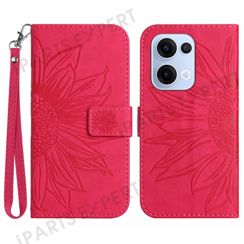 For Oppo Reno13 5G (Global) Case Sunflower Imprint Leather Wallet Phone Cover with Wrist Strap - Rose