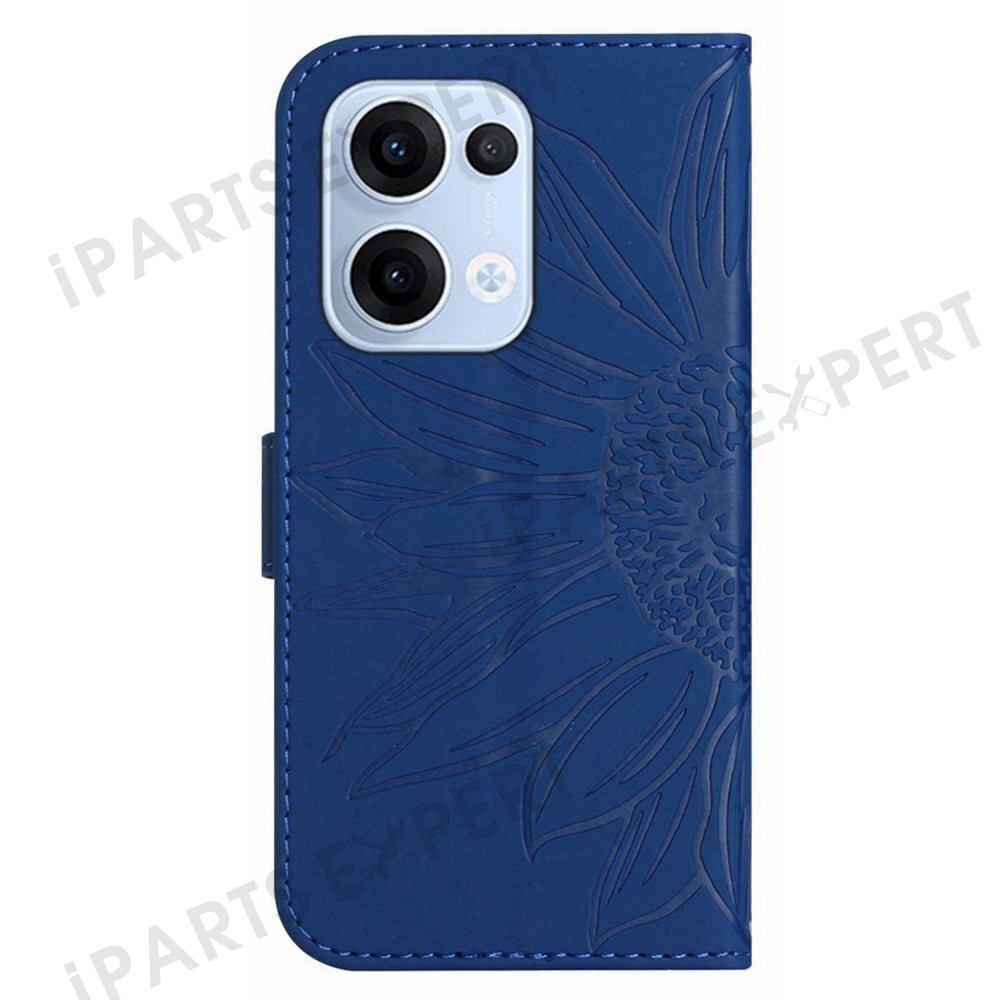For Oppo Reno13 5G (Global) Case Sunflower Imprint Leather Wallet Phone Cover with Wrist Strap - Sapphire