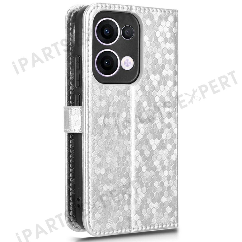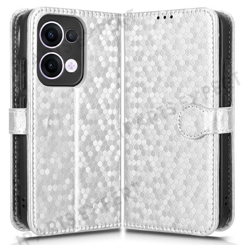 For Oppo Reno13 5G (Global) Wallet Case Dot Pattern Imprint PU Leather Phone Cover - Silver