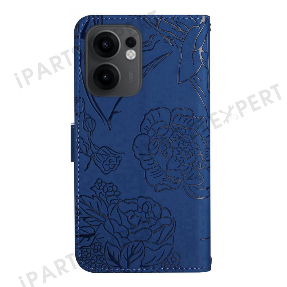 For Oppo Reno13 F 5G (Reno 13 FS 5G) / 4G Case Butterfly Flower Imprinted Leather Phone Cover with Strap - Blue