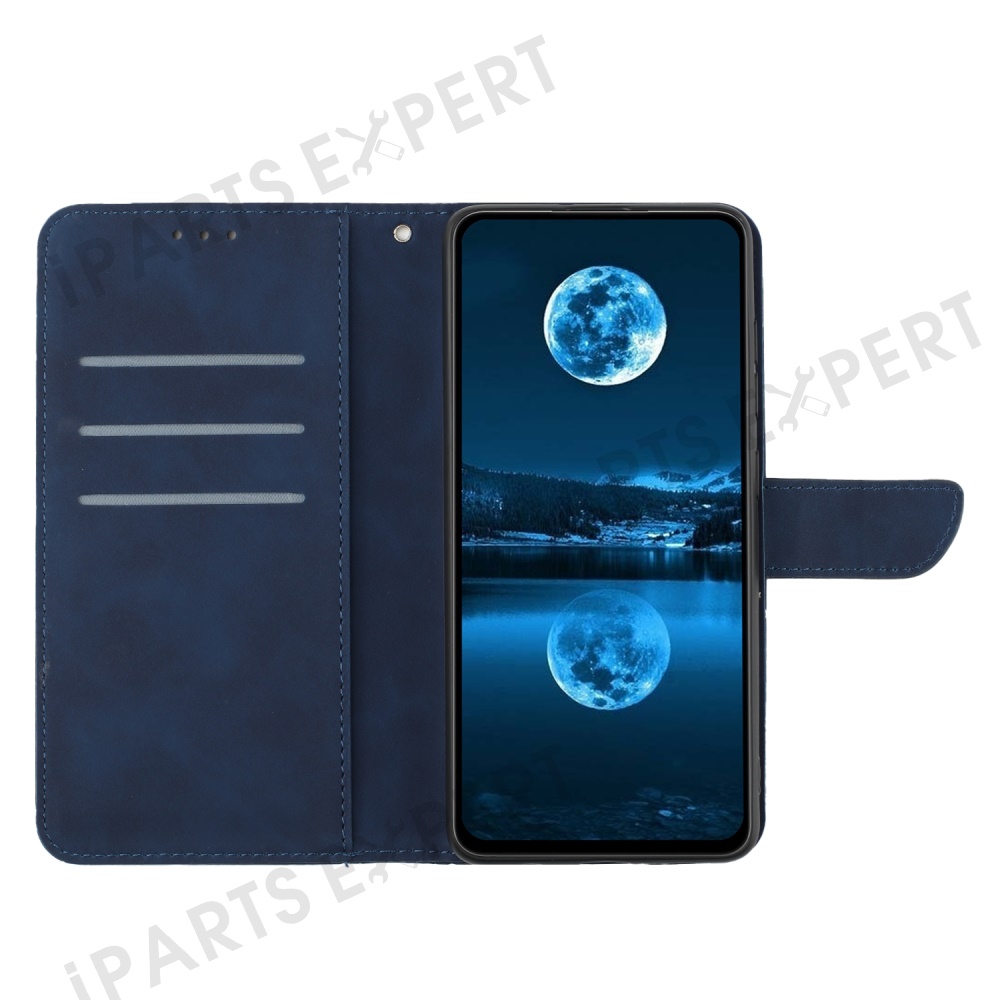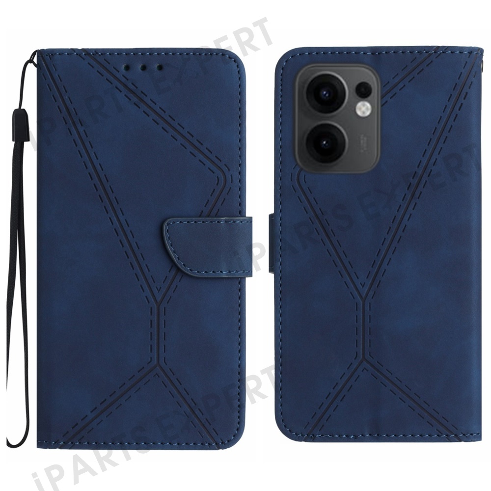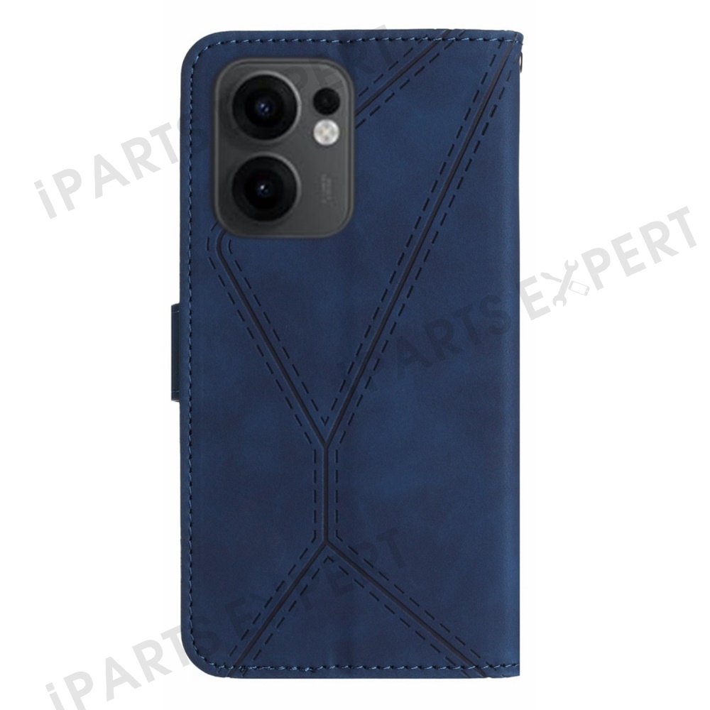 For Oppo Reno13 F 5G (Reno 13 FS 5G) / 4G Case Skin Touch Lines Imprinted PU Leather Flip Phone Cover - Blue