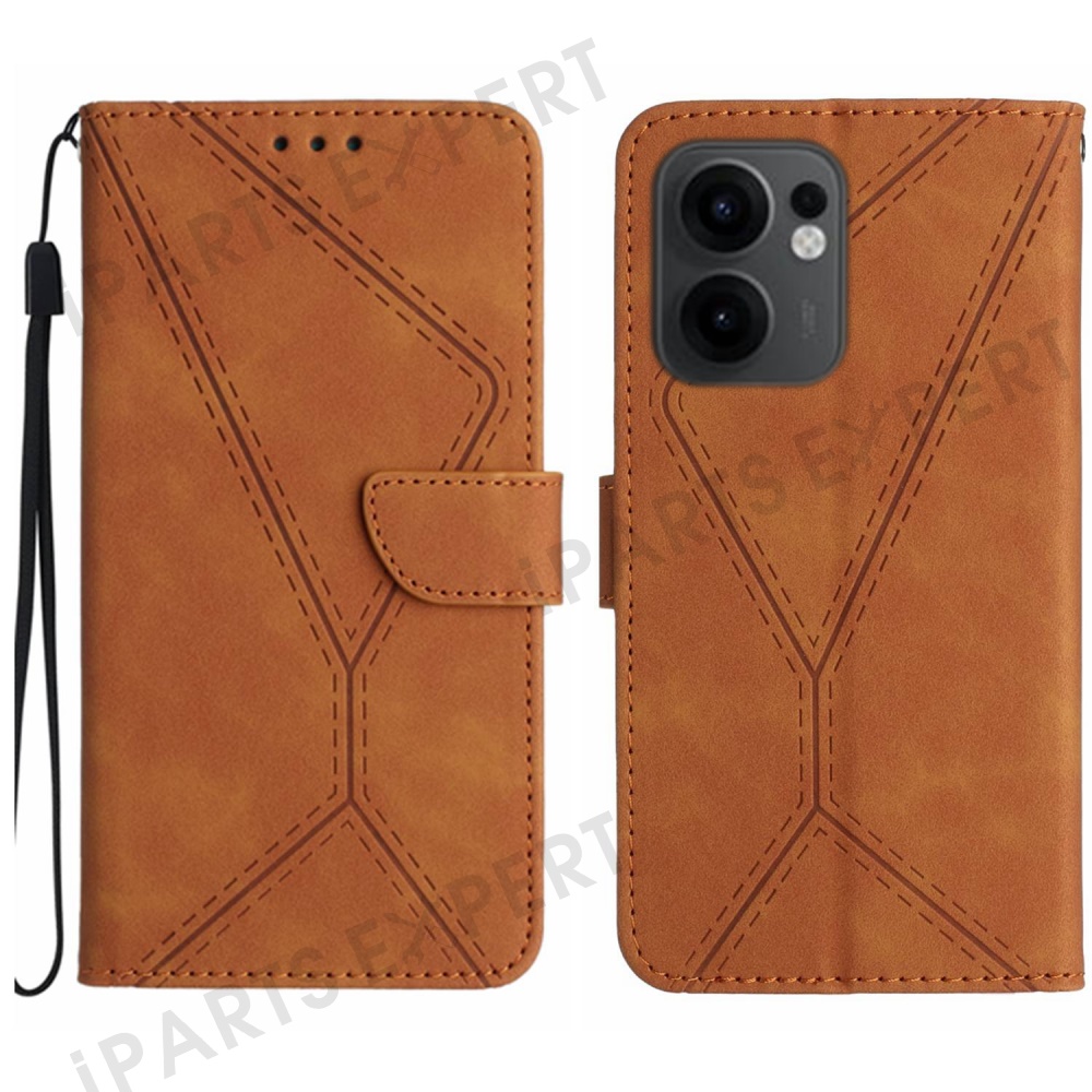 For Oppo Reno13 F 5G (Reno 13 FS 5G) / 4G Case Skin Touch Lines Imprinted PU Leather Flip Phone Cover - Brown