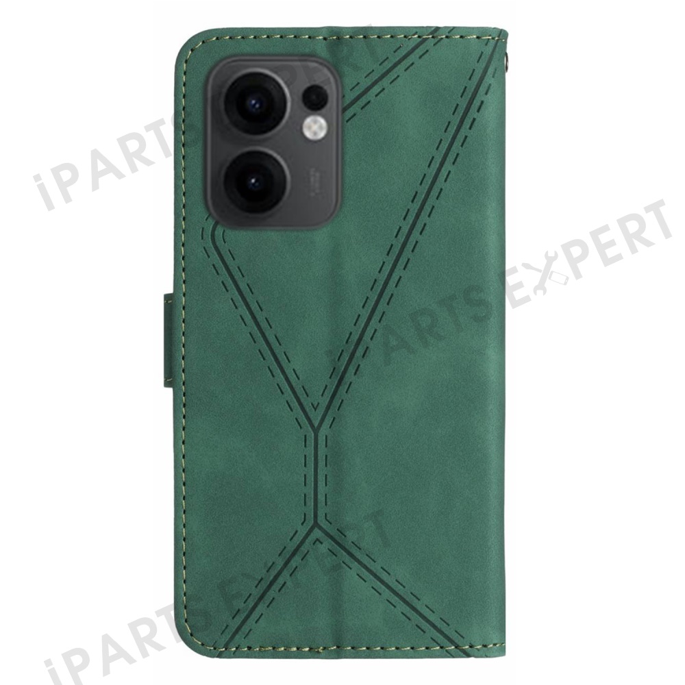 For Oppo Reno13 F 5G (Reno 13 FS 5G) / 4G Case Skin Touch Lines Imprinted PU Leather Flip Phone Cover - Green
