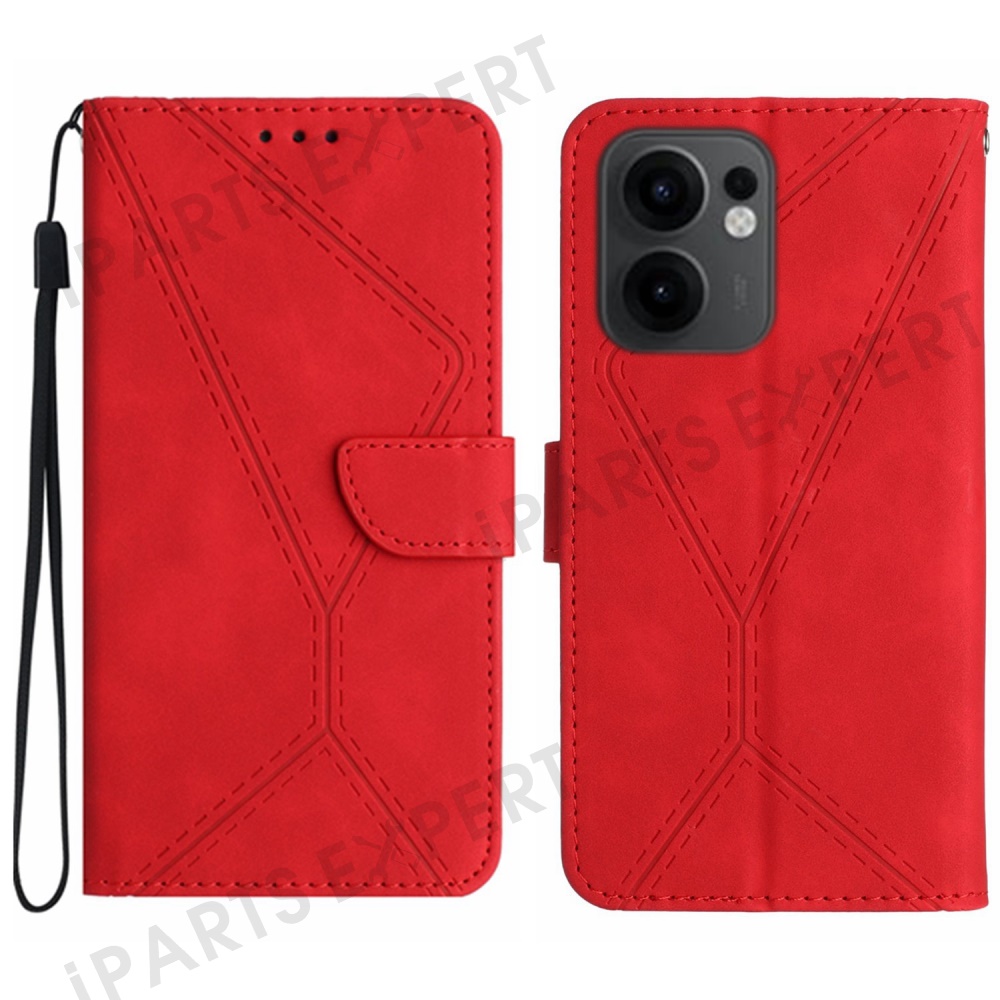 For Oppo Reno13 F 5G (Reno 13 FS 5G) / 4G Case Skin Touch Lines Imprinted PU Leather Flip Phone Cover - Red