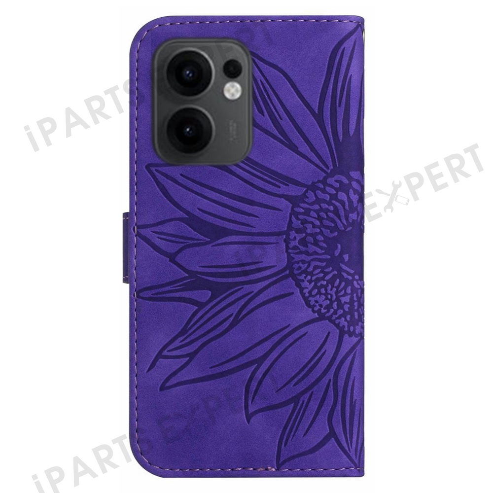 For Oppo Reno13 F 5G (Reno 13 FS 5G) / 4G Case Sunflower Imprint PU Leather Phone Cover with Long Strap - Dark Purple