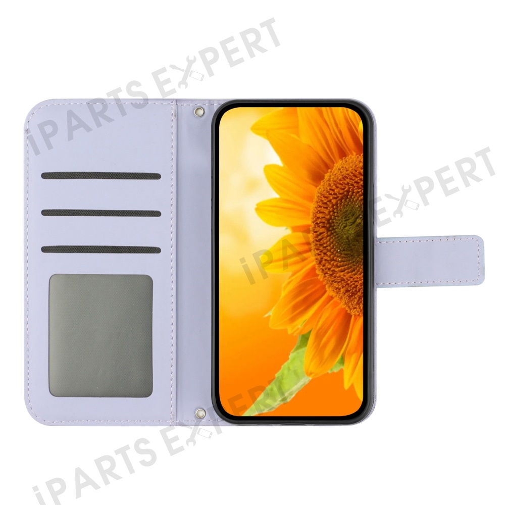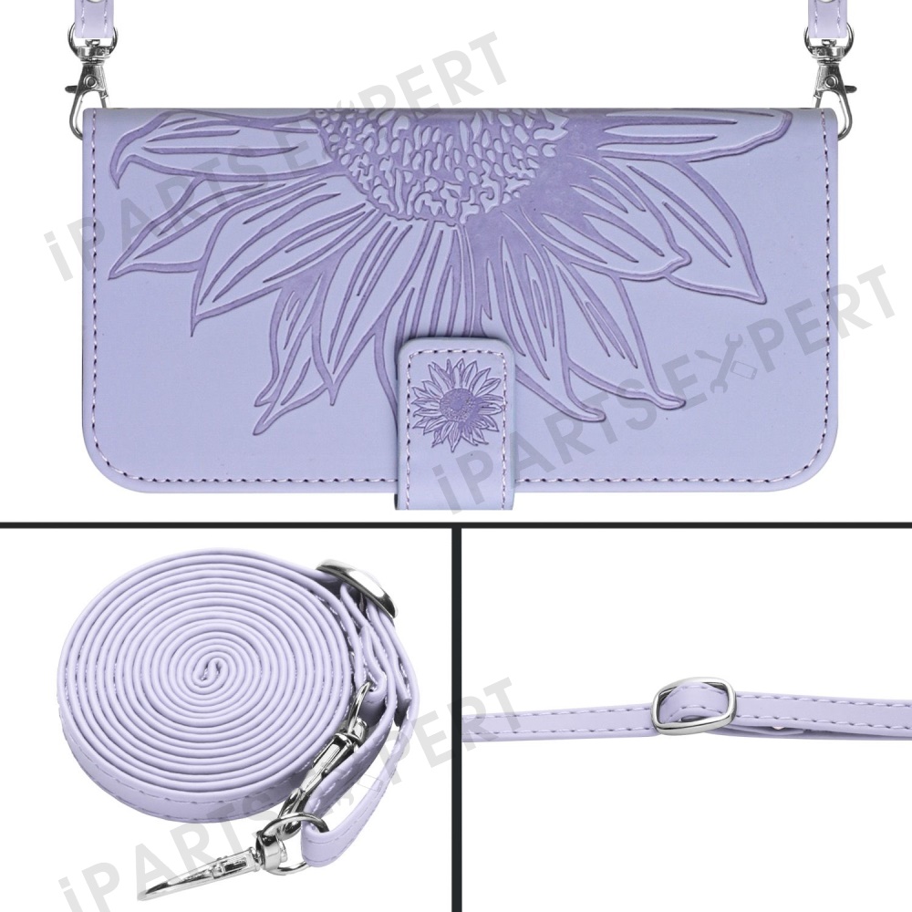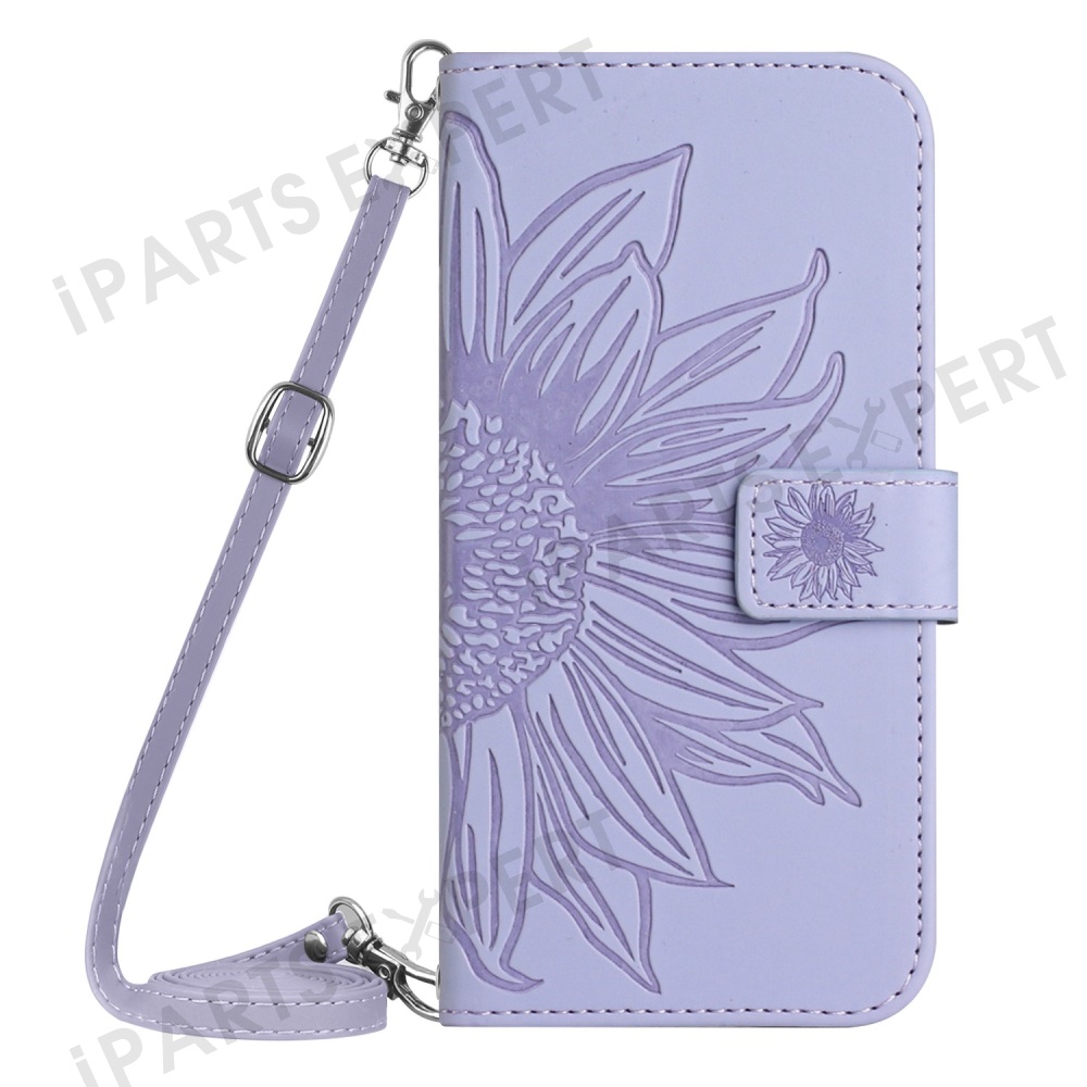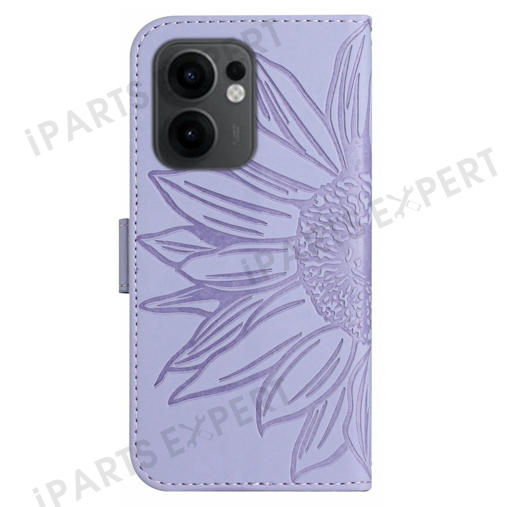 For Oppo Reno13 F 5G (Reno 13 FS 5G) / 4G Case Sunflower Imprint PU Leather Phone Cover with Long Strap - Light Purple