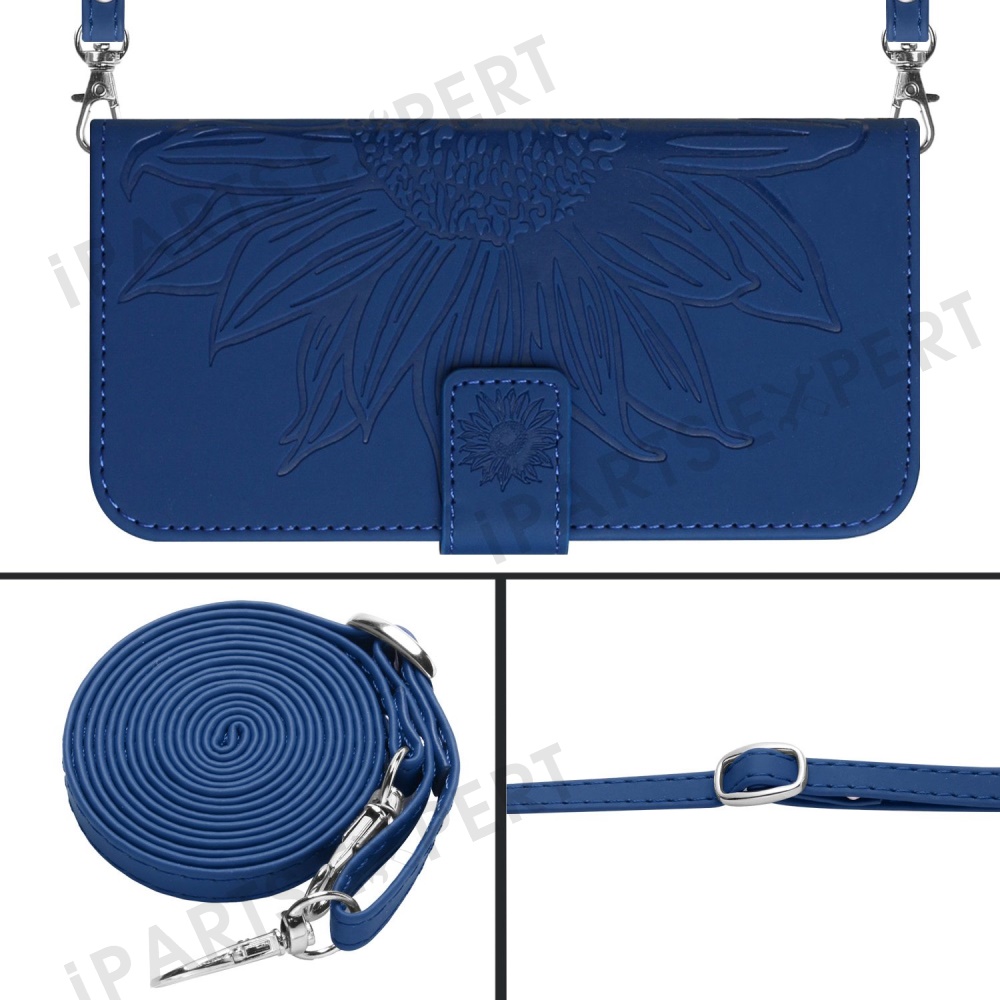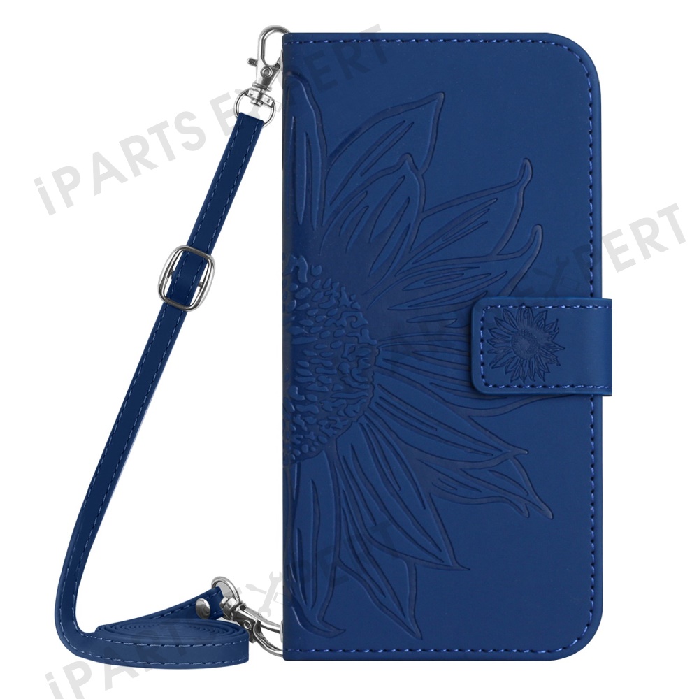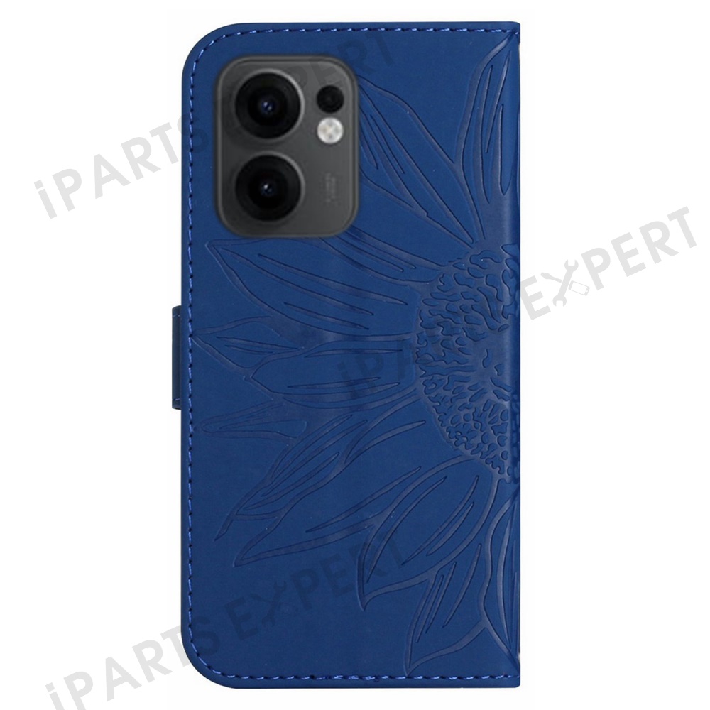For Oppo Reno13 F 5G (Reno 13 FS 5G) / 4G Case Sunflower Imprint PU Leather Phone Cover with Long Strap - Sapphire