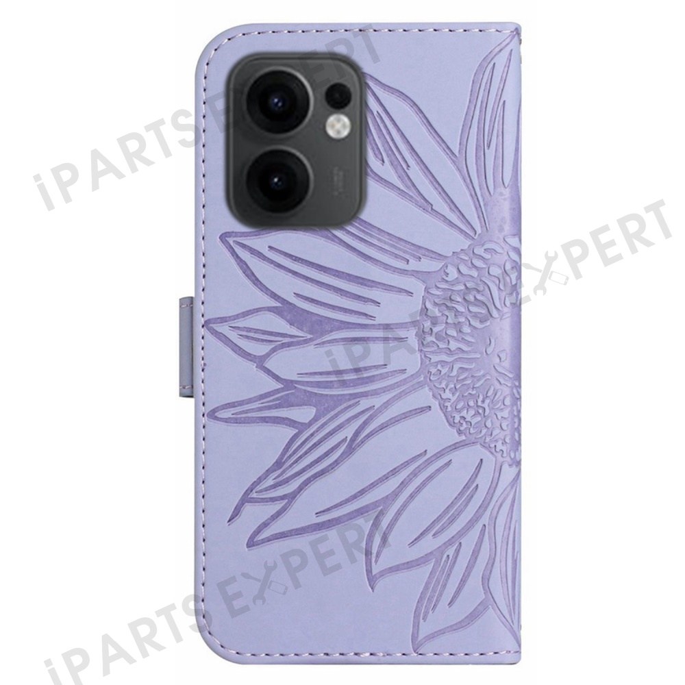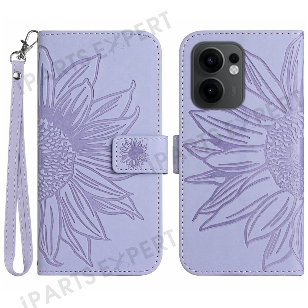 For Oppo Reno13 F 5G (Reno 13 FS 5G) / 4G Case Sunflower Imprint Leather Wallet Phone Cover with Wrist Strap - Light Purple