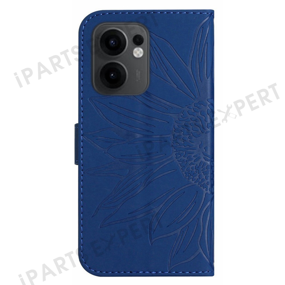 For Oppo Reno13 F 5G (Reno 13 FS 5G) / 4G Case Sunflower Imprint Leather Wallet Phone Cover with Wrist Strap - Sapphire