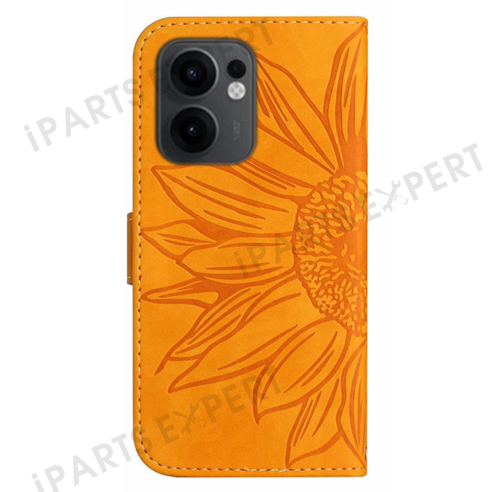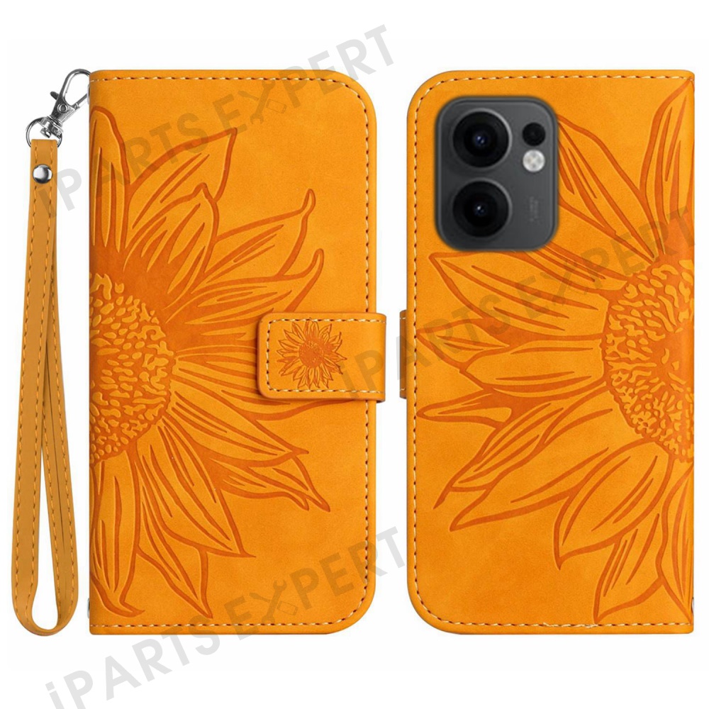 For Oppo Reno13 F 5G (Reno 13 FS 5G) / 4G Case Sunflower Imprint Leather Wallet Phone Cover with Wrist Strap - Yellow