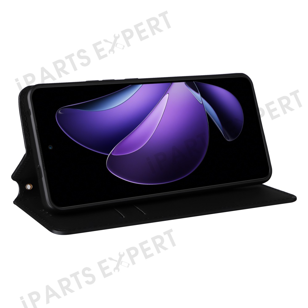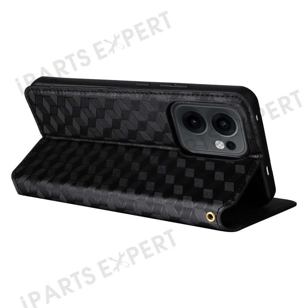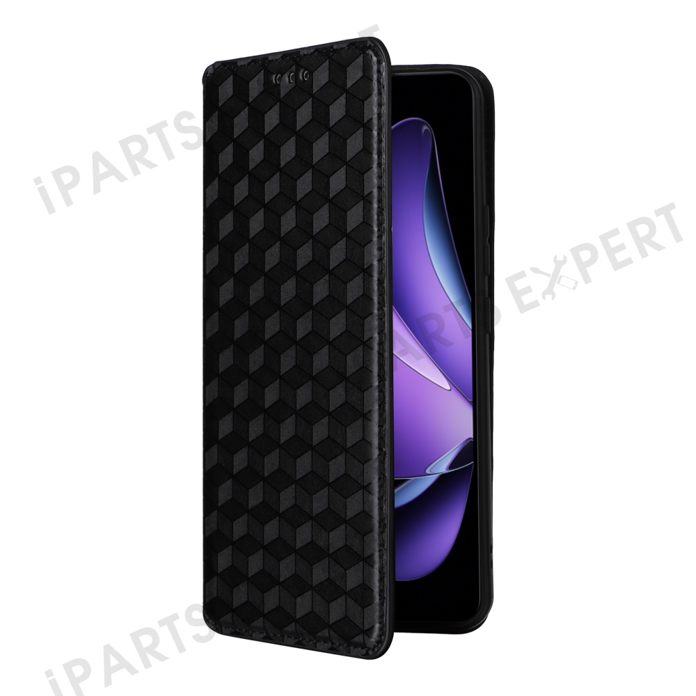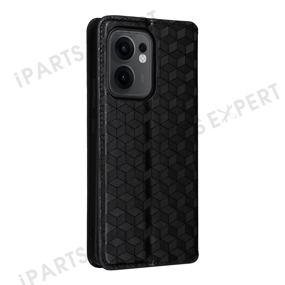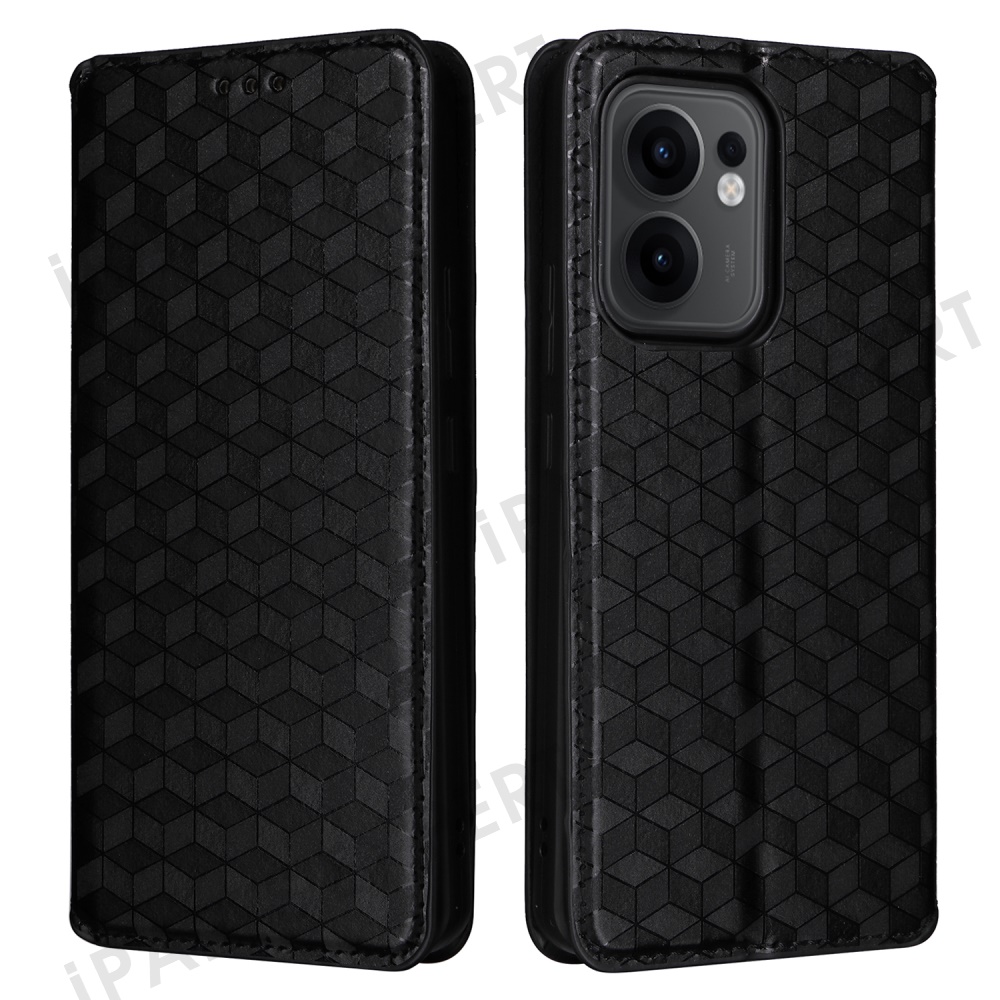 For Oppo Reno13 F 5G (Reno 13 FS 5G) / 4G Wallet Case Rhombus Imprinted Leather Phone Cover - Black