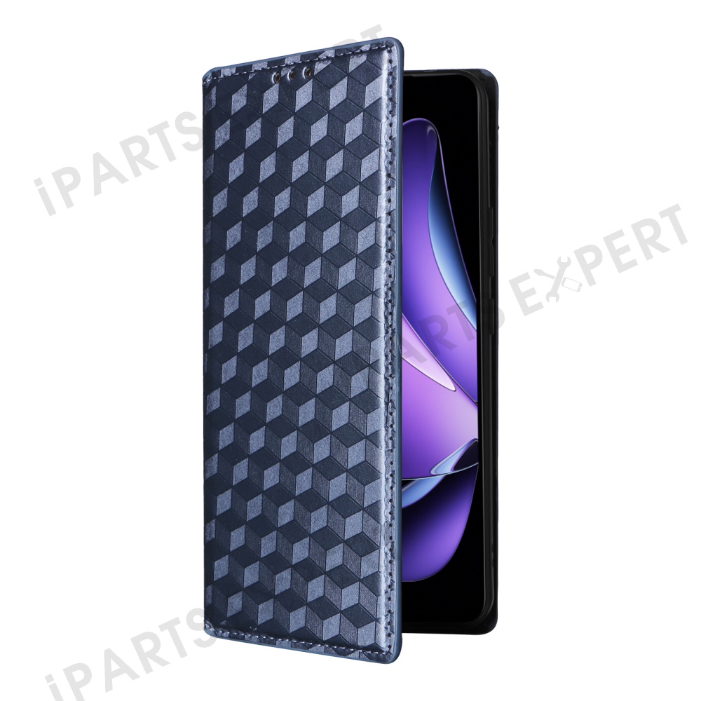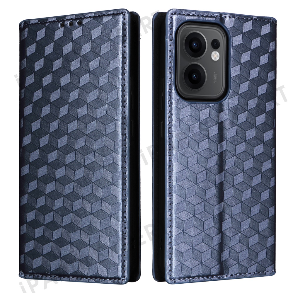 For Oppo Reno13 F 5G (Reno 13 FS 5G) / 4G Wallet Case Rhombus Imprinted Leather Phone Cover - Blue