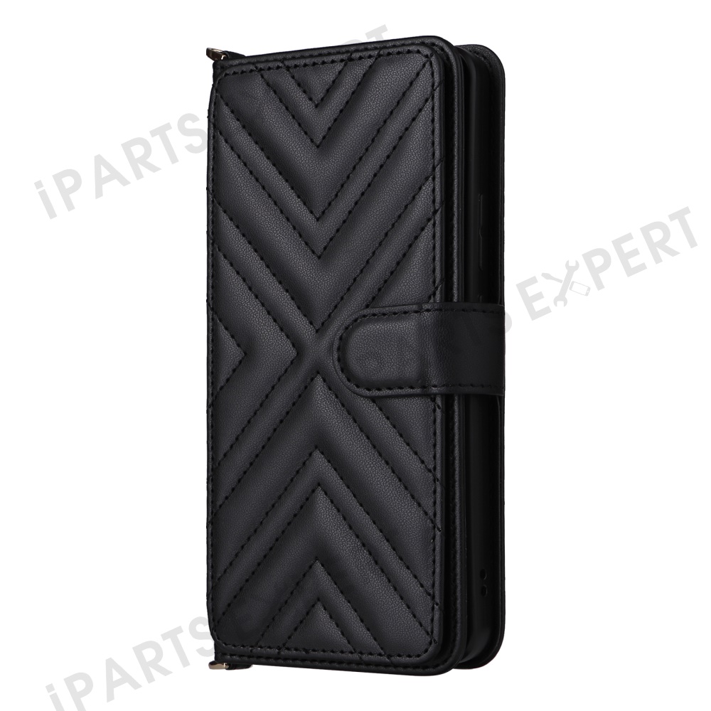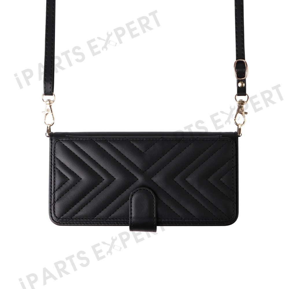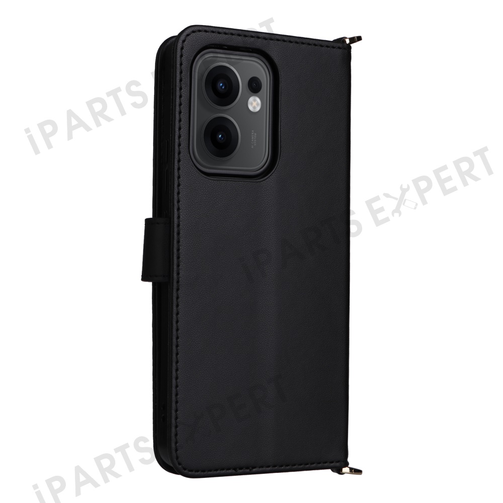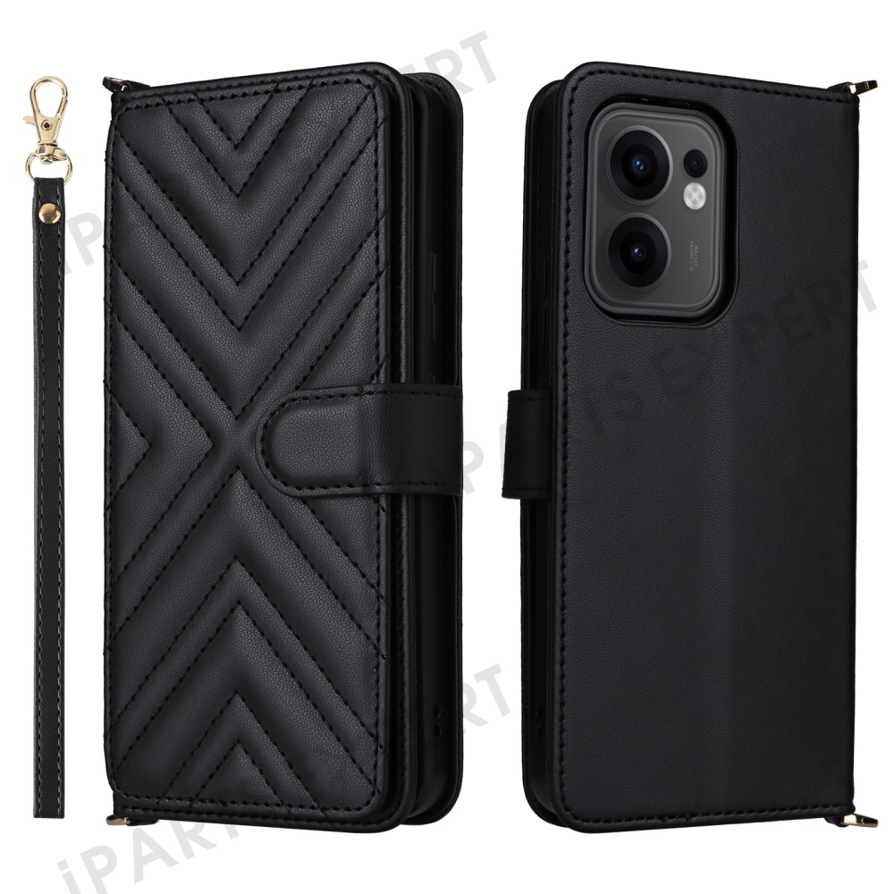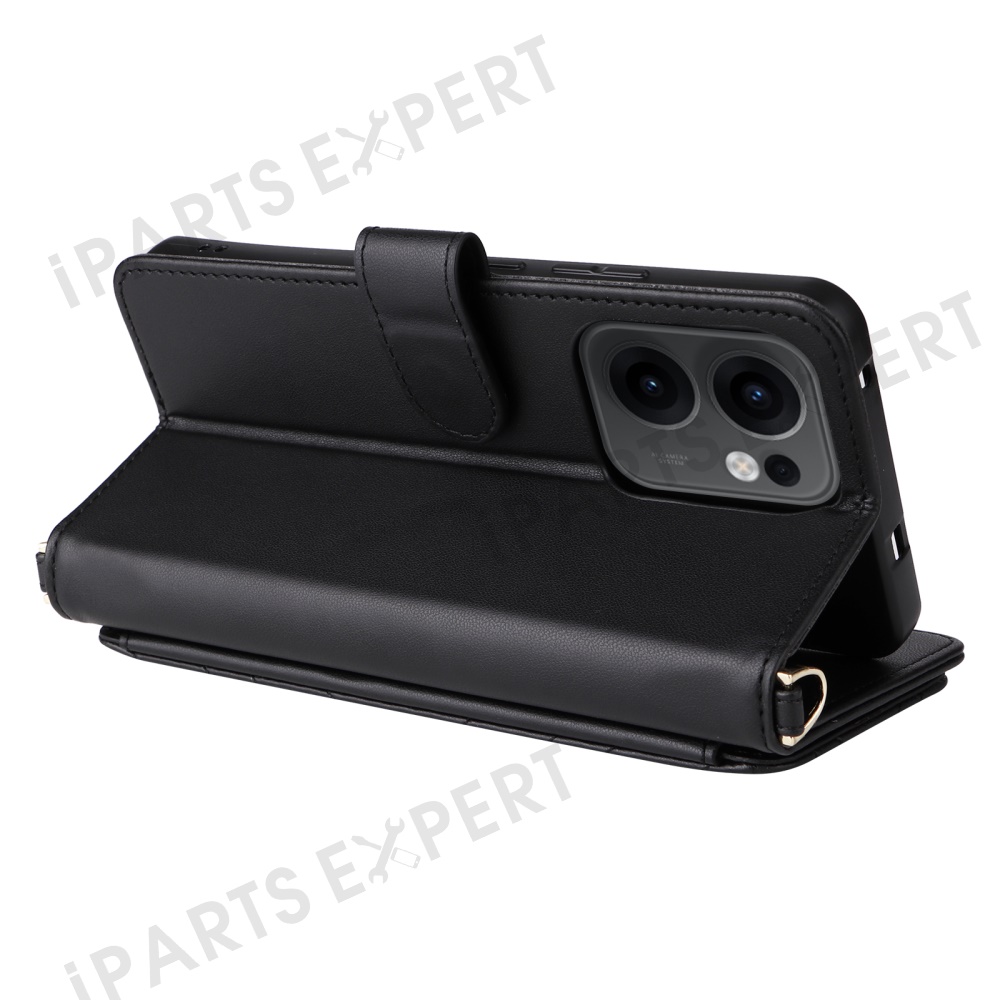 For Oppo Reno13 F 5G (Reno 13 FS 5G) / 4G Wallet Case with Shoulder / Wrist Strap Leather Phone Cover Stand - Black