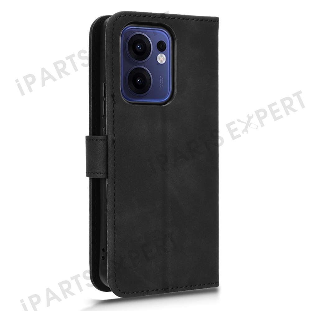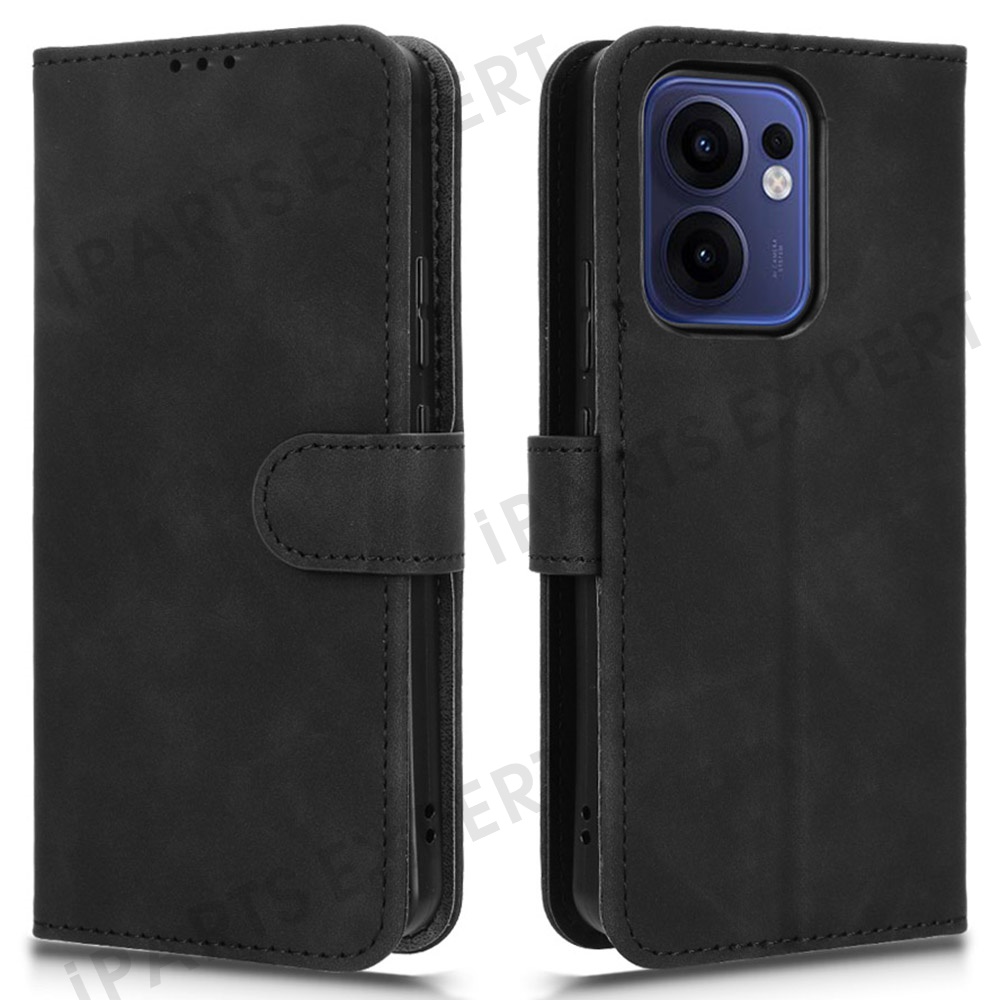 For Oppo Reno13 F 5G (Reno 13 FS 5G) / 4G Leather Case Skin Feel Anti Drop Wallet Flip Phone Cover - Black