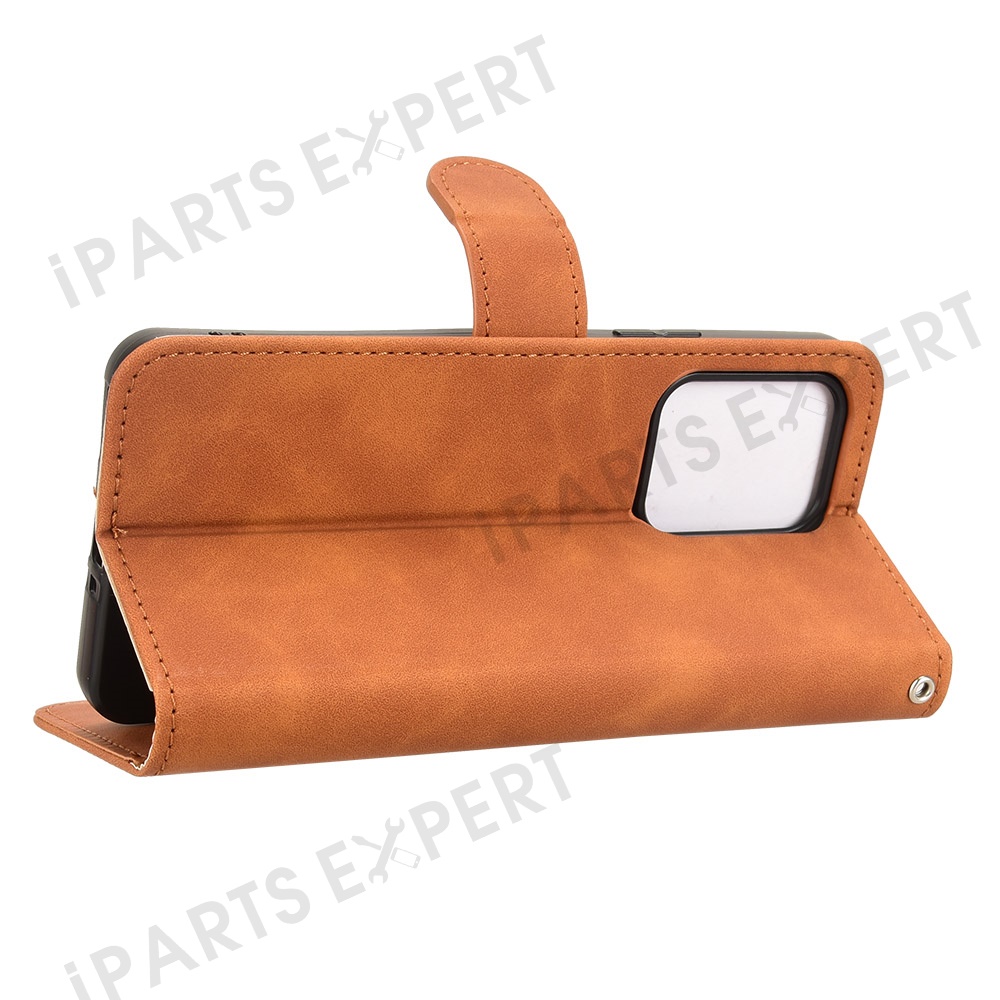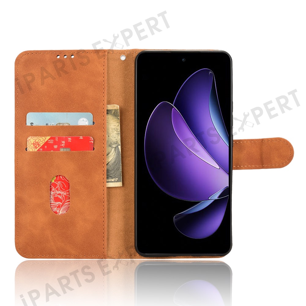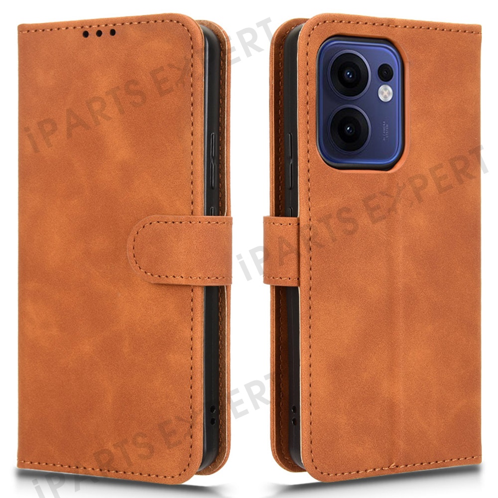For Oppo Reno13 F 5G (Reno 13 FS 5G) / 4G Leather Case Skin Feel Anti Drop Wallet Flip Phone Cover - Brown