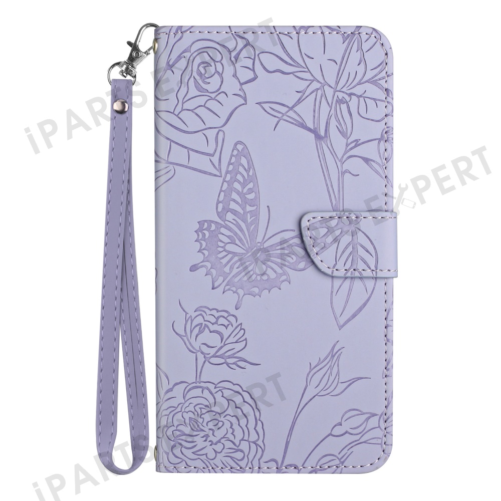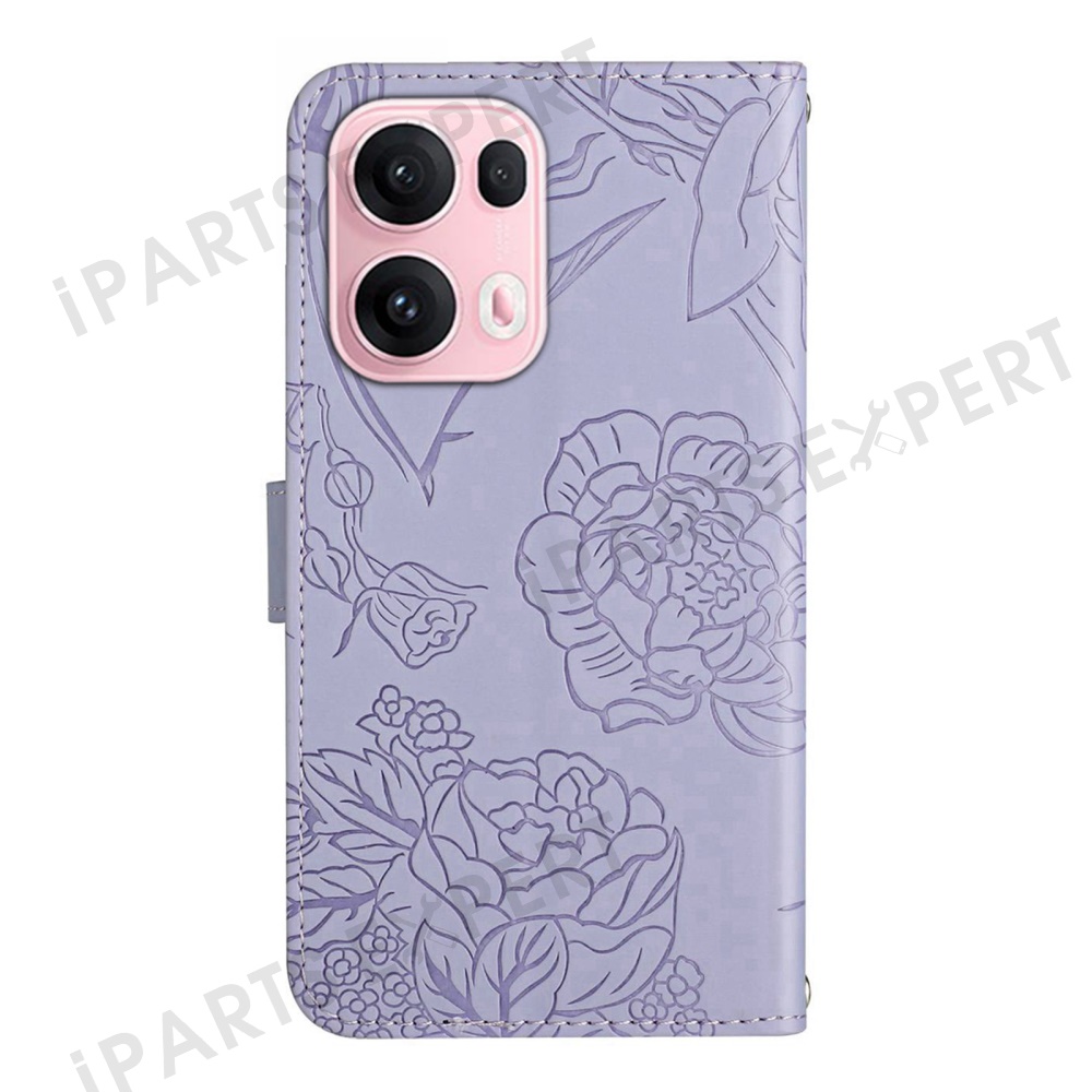 For Oppo Reno13 Pro 5G Case Butterfly Flower Imprinted Leather Phone Cover with Strap - Purple