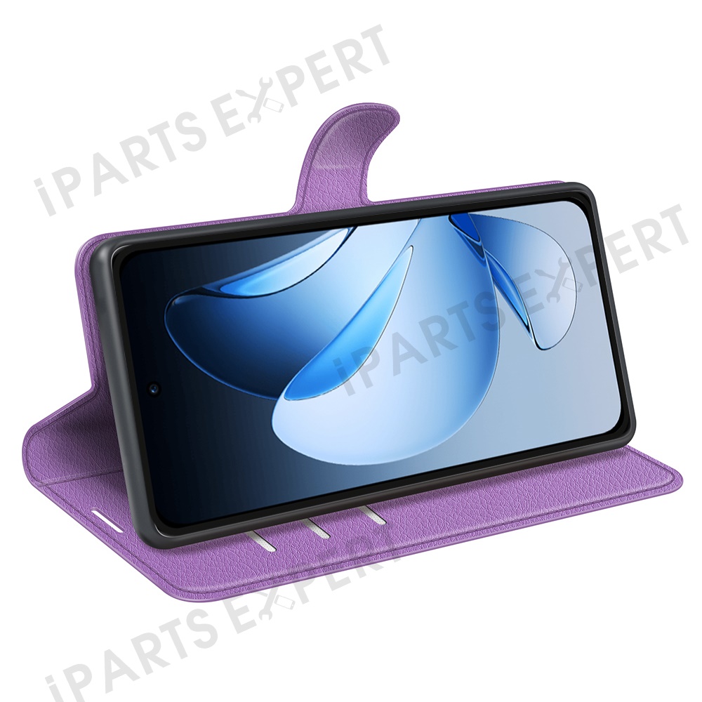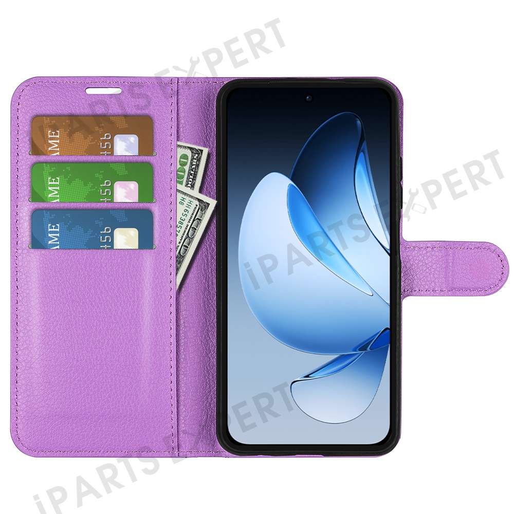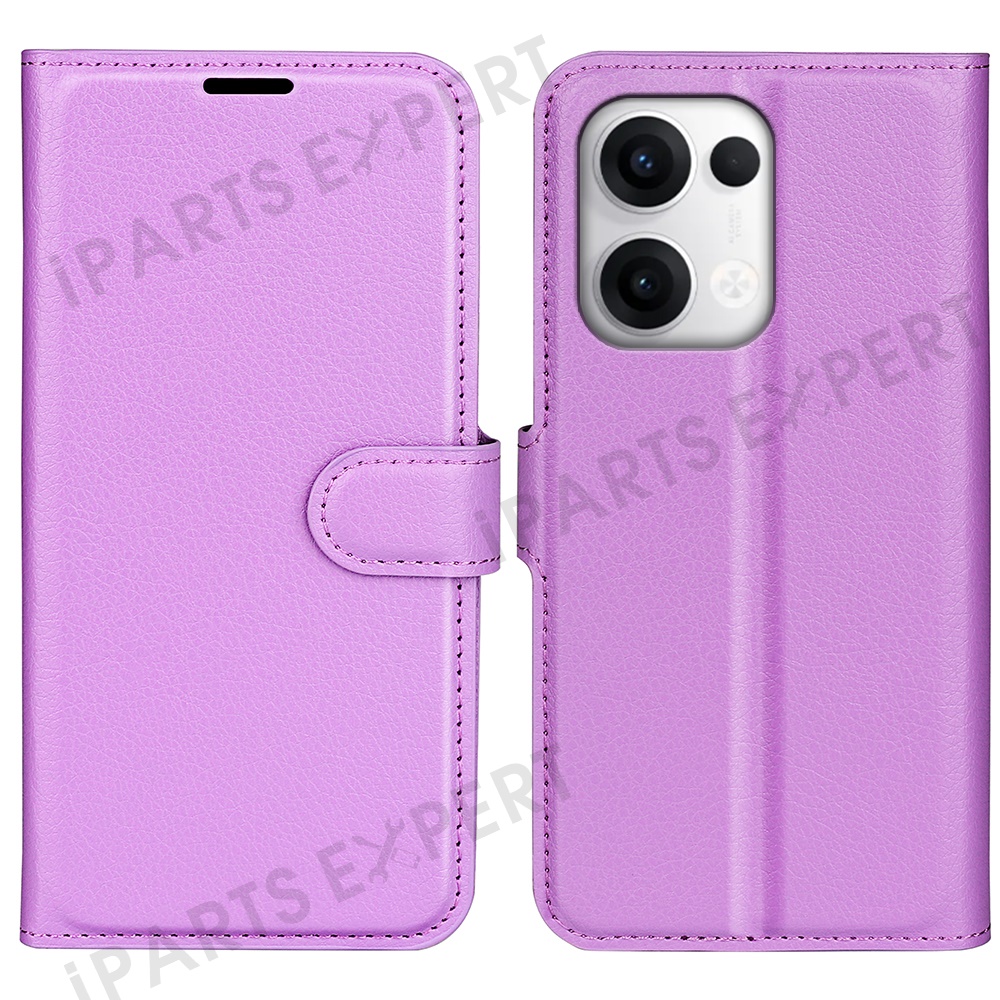 For Oppo Reno13 Pro 5G Case Litchi Texture Shockproof Leather Wallet Phone Cover - Purple