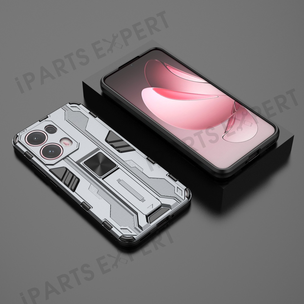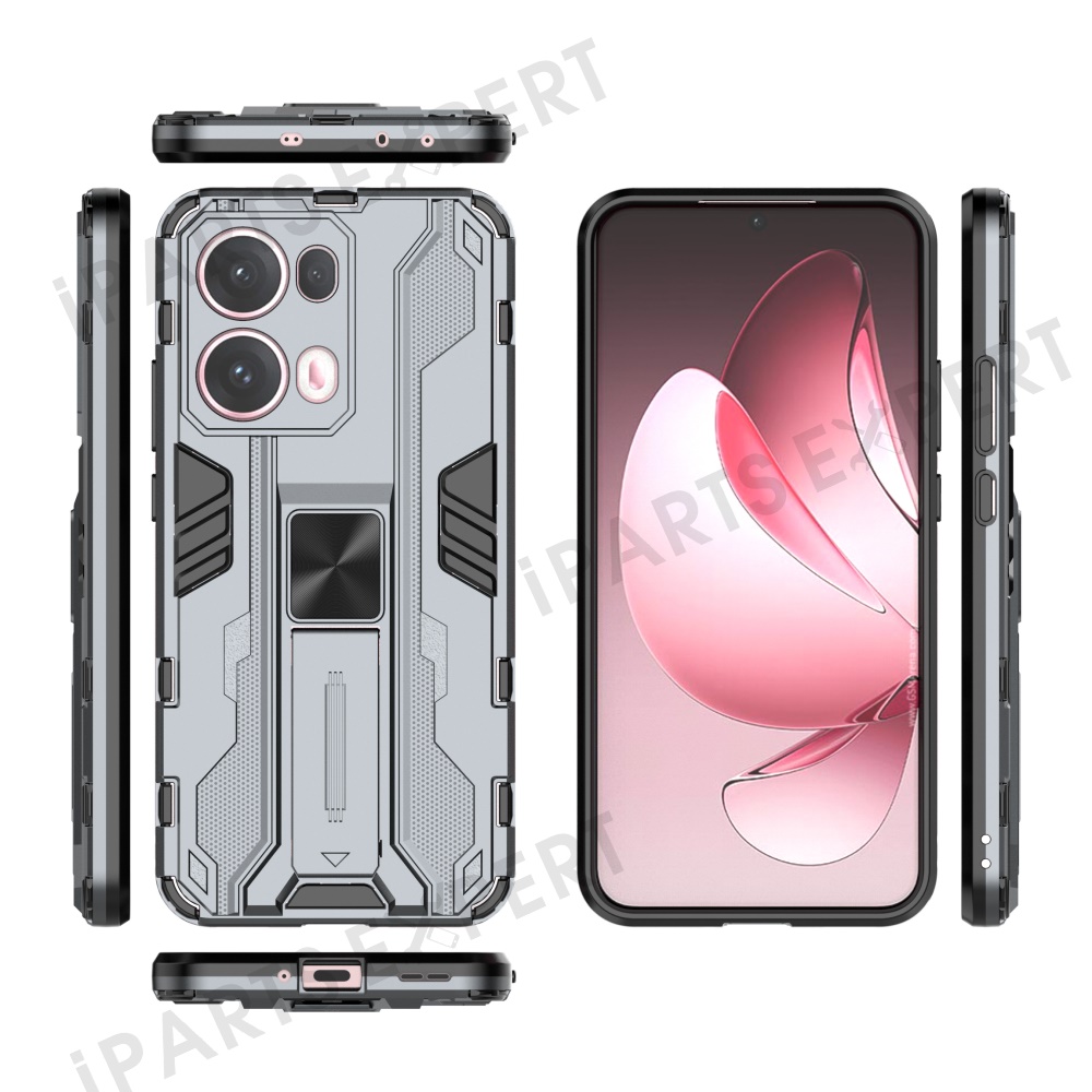 For Oppo Reno13 Pro 5G Case PC + TPU Shockproof Phone Cover with Kickstand - Grey