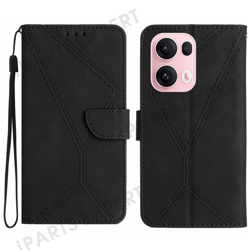 For Oppo Reno13 Pro 5G Case Skin Touch Lines Imprinted PU Leather Flip Phone Cover - Black