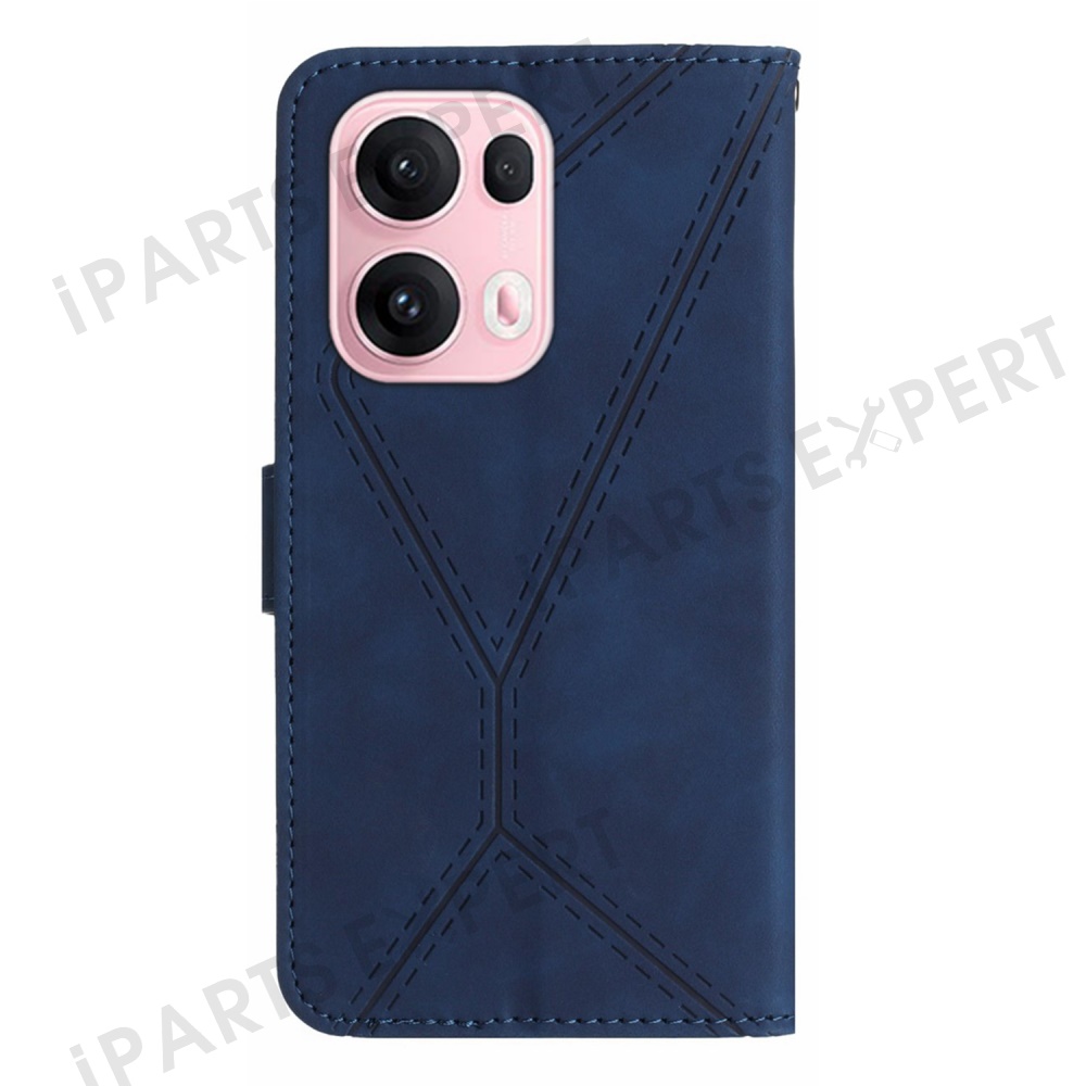 For Oppo Reno13 Pro 5G Case Skin Touch Lines Imprinted PU Leather Flip Phone Cover - Blue