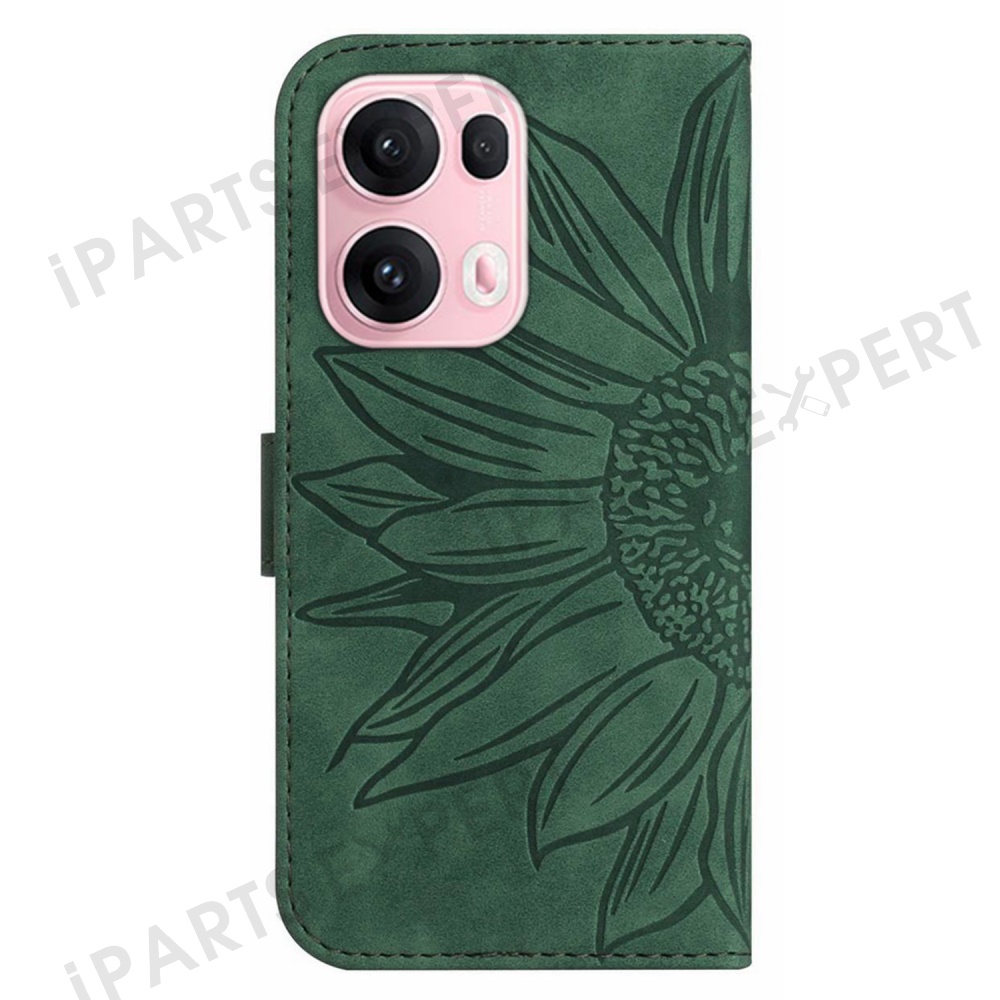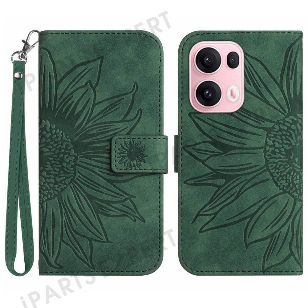 For Oppo Reno13 Pro 5G Case Sunflower Imprint Leather Wallet Phone Cover with Wrist Strap - Dark Green