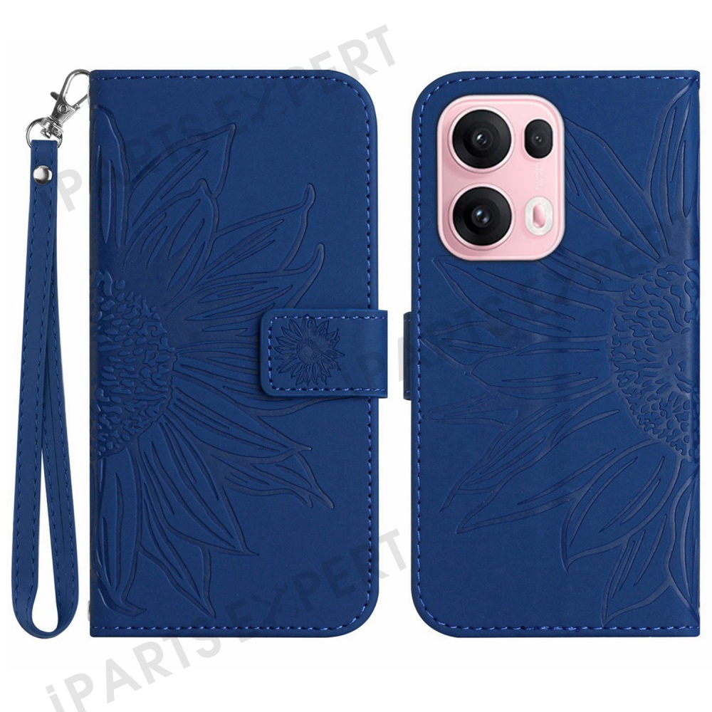 For Oppo Reno13 Pro 5G Case Sunflower Imprint Leather Wallet Phone Cover with Wrist Strap - Sapphire