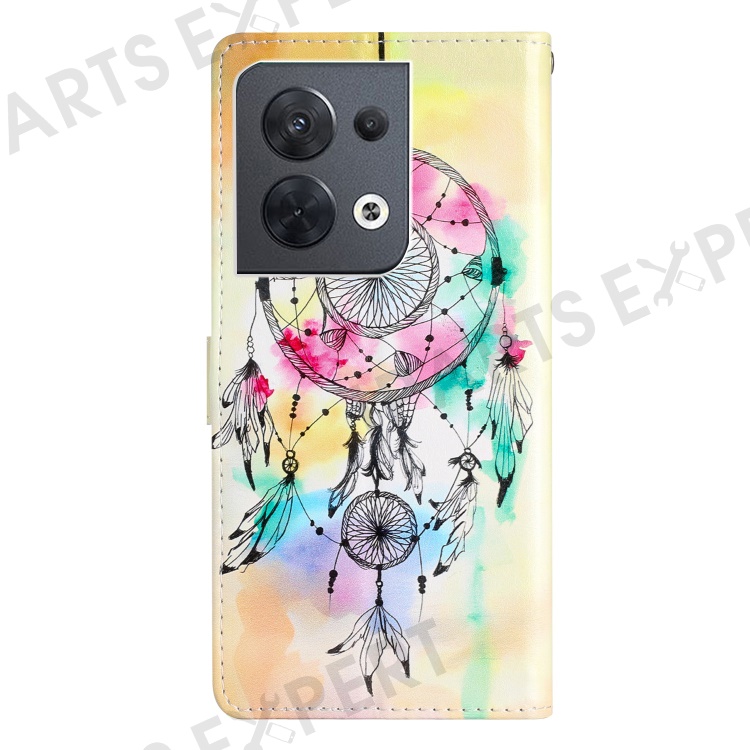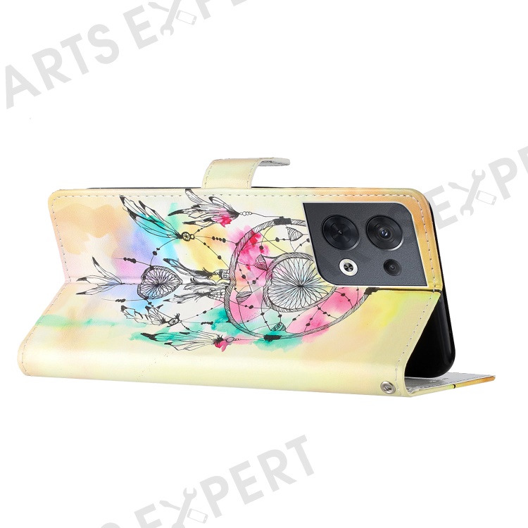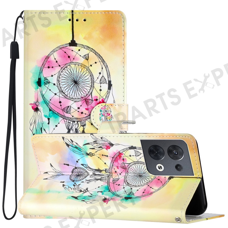 For Oppo Reno8 5G (Global Version) Pattern Printing PU Leather Flip Cover Stand Feature Magnetic Closure Wallet Phone Case with Strap - Wind Chime