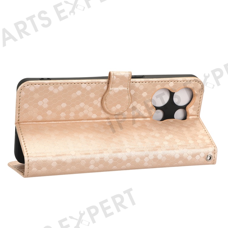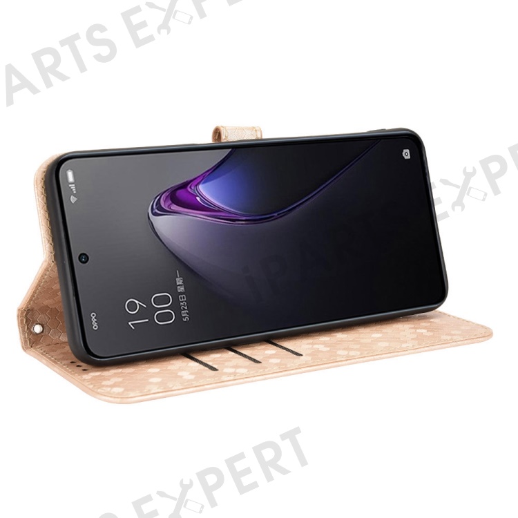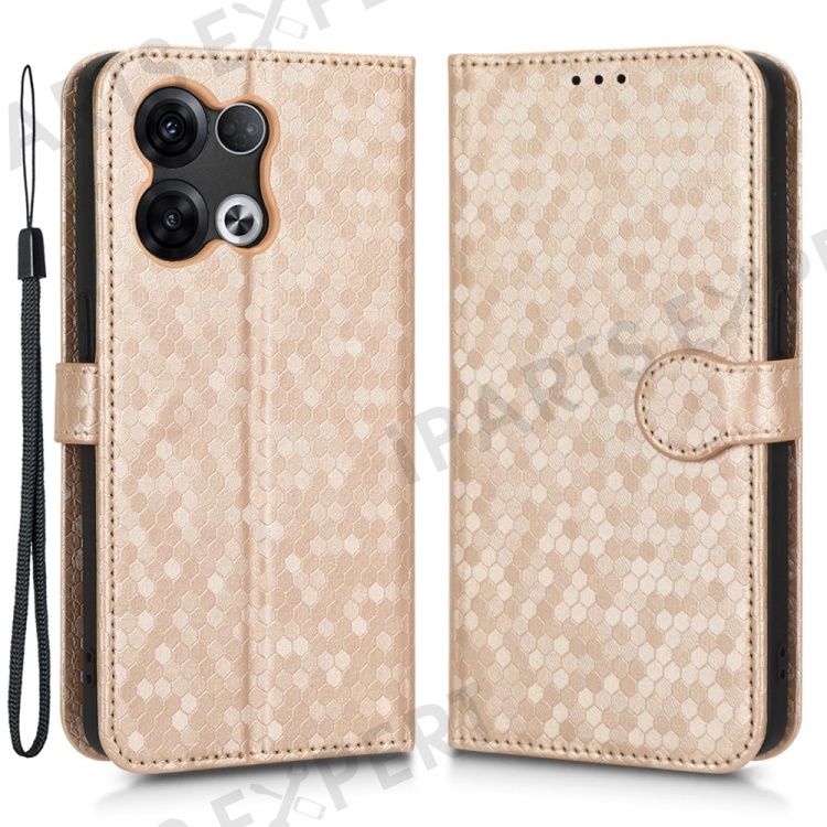 For Oppo Reno8 5G (Global Version) Phone Case Anti-drop Wallet Phone Cover Magnetic Clasp Dot Pattern Imprinted PU Leather Stand Case - Gold
