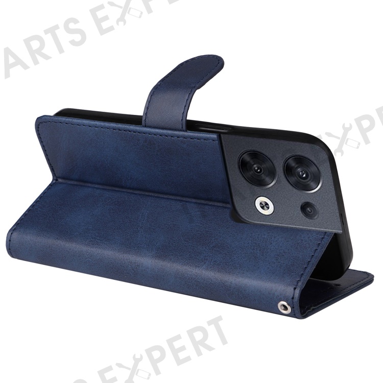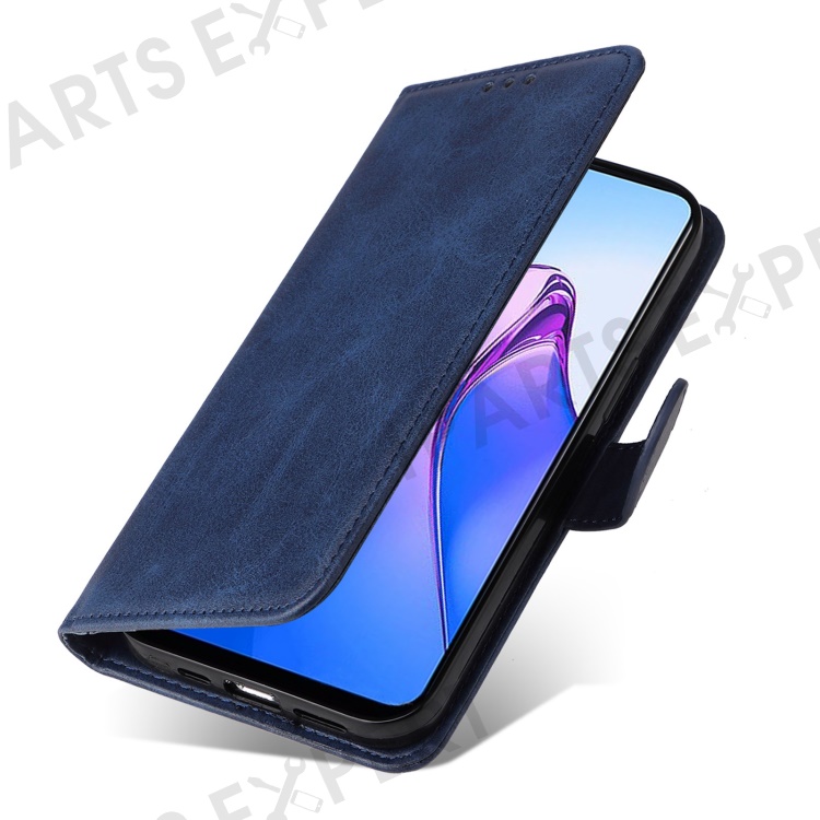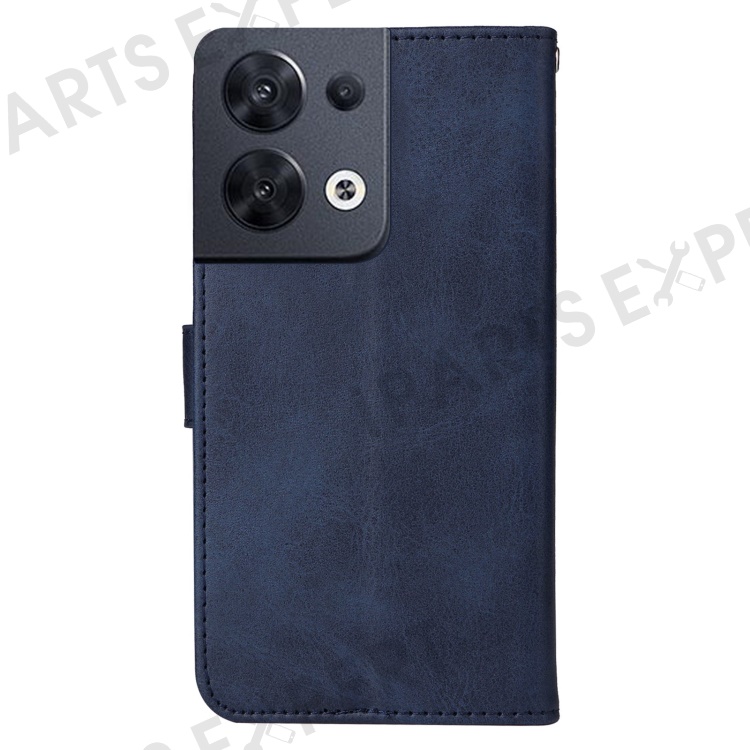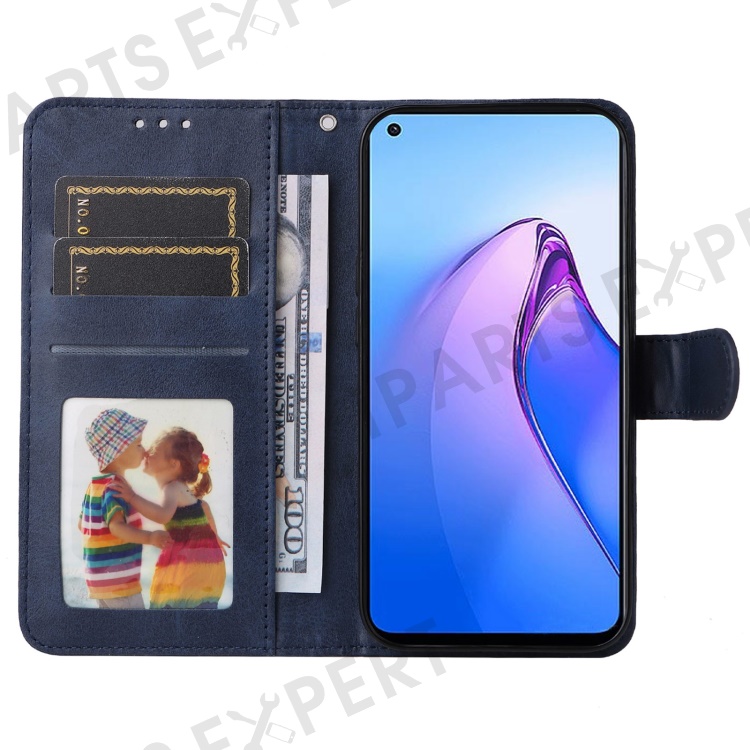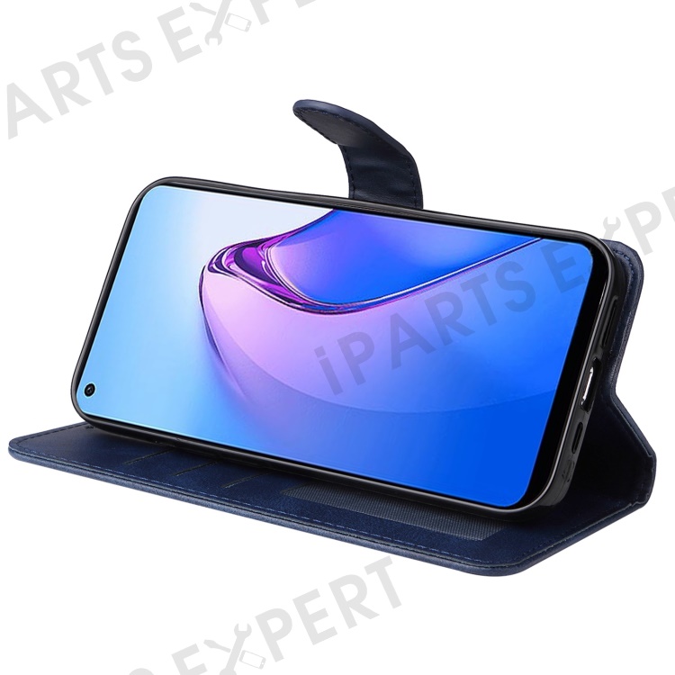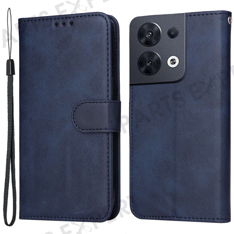 For Oppo Reno8 5G (Global Version) / Reno8 5G Stand Wallet Shockproof Phone Case Calf Texture PU Leather + TPU Cover with Wrist Strap - Blue