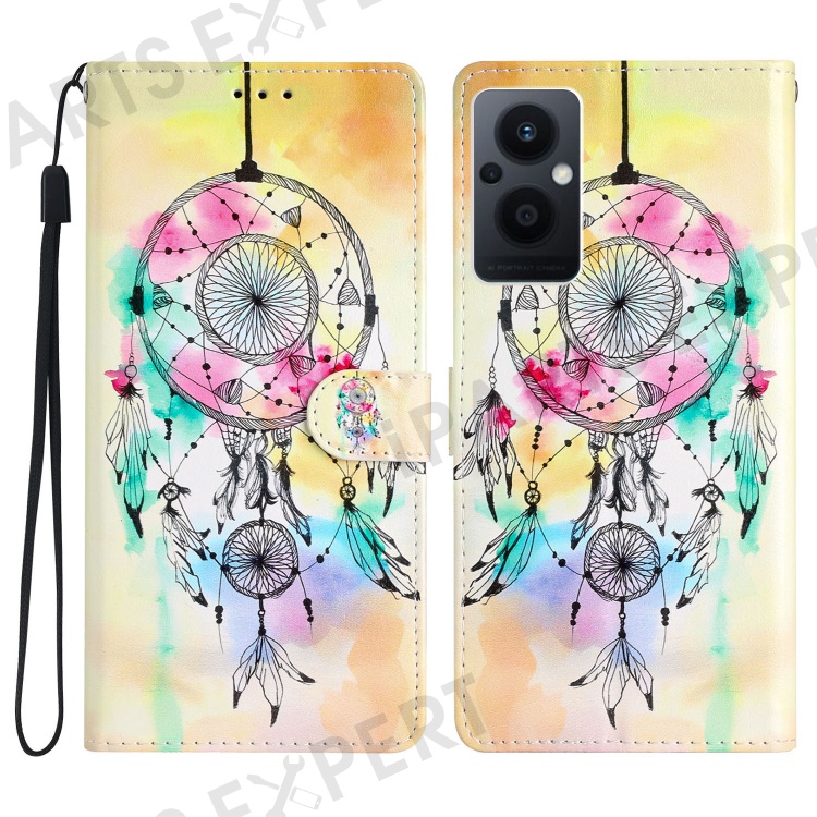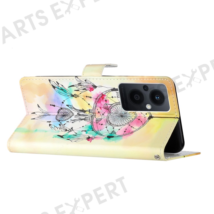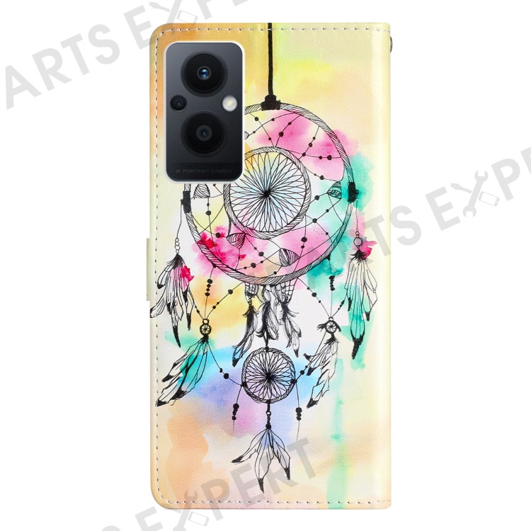 For Oppo Reno8 Lite 5G / Reno7 Z 5G PU Leather Wallet Case Magnetic Closure Stand Full Protection Folio Flip Pattern Printing Phone Cover with Strap - Wind Chime