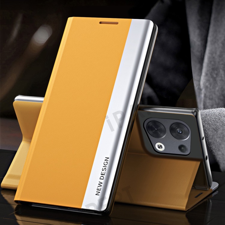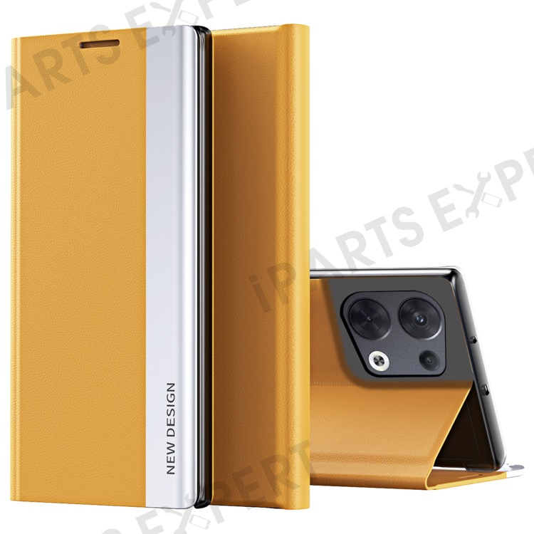 For Oppo Reno8 Pro+ 5G (Global Version) / Reno8 Pro 5G (Global Version) Collision Resistant PU Leather Flip Stand Cover Electroplating Phone Case - Yellow
