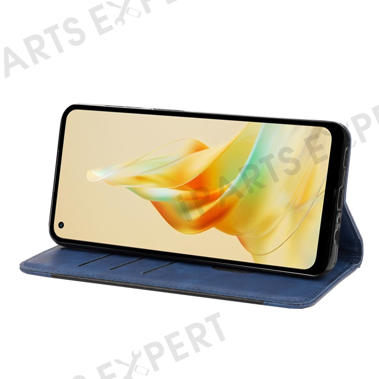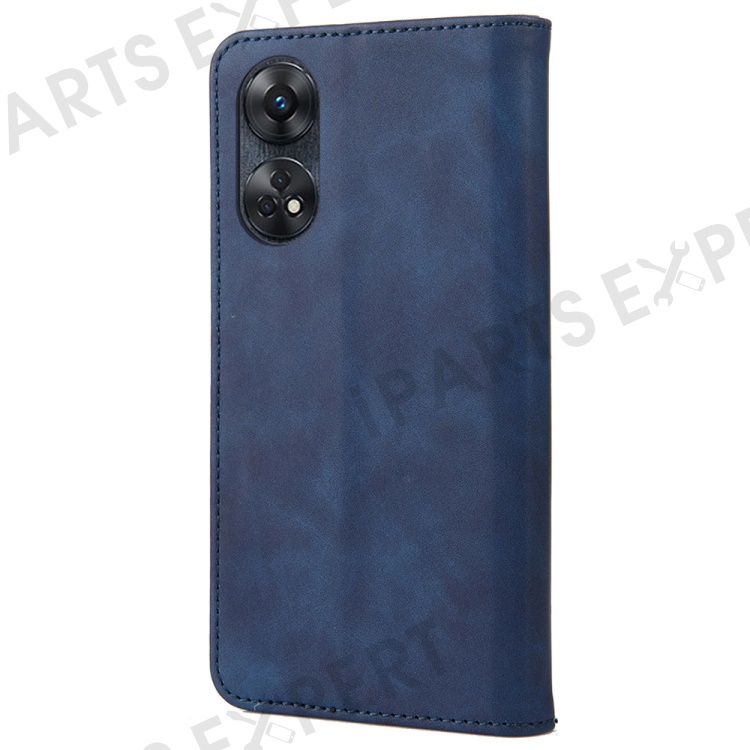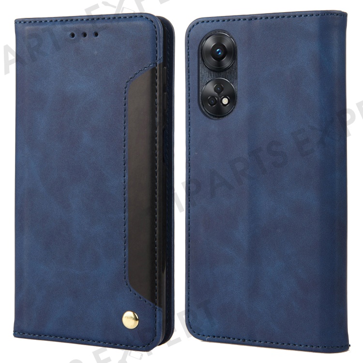 For Oppo Reno8 T 4G Phone Wallet Case PU Leather Color Splicing Stand Skin-touch Phone Cover - Blue