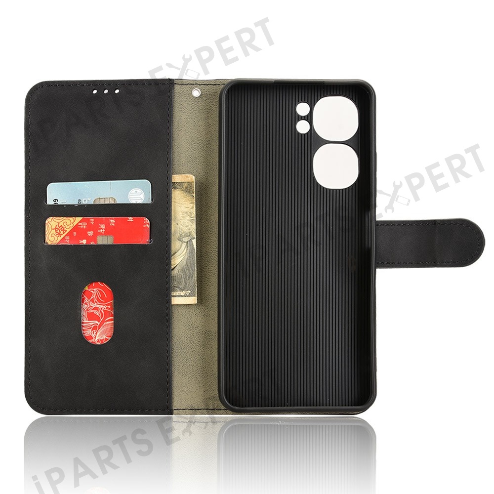 For Oukitel C58 Leather Case Skin Feel Anti Drop Wallet Flip Phone Cover - Black