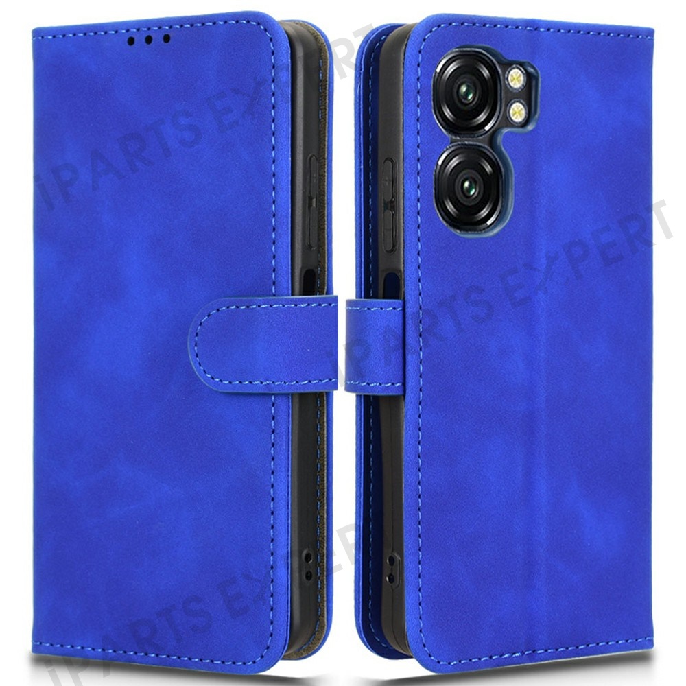 For Oukitel C58 Leather Case Skin Feel Anti Drop Wallet Flip Phone Cover - Blue