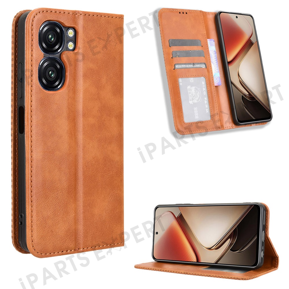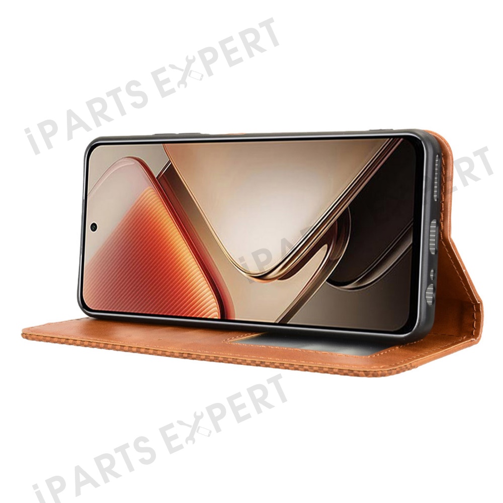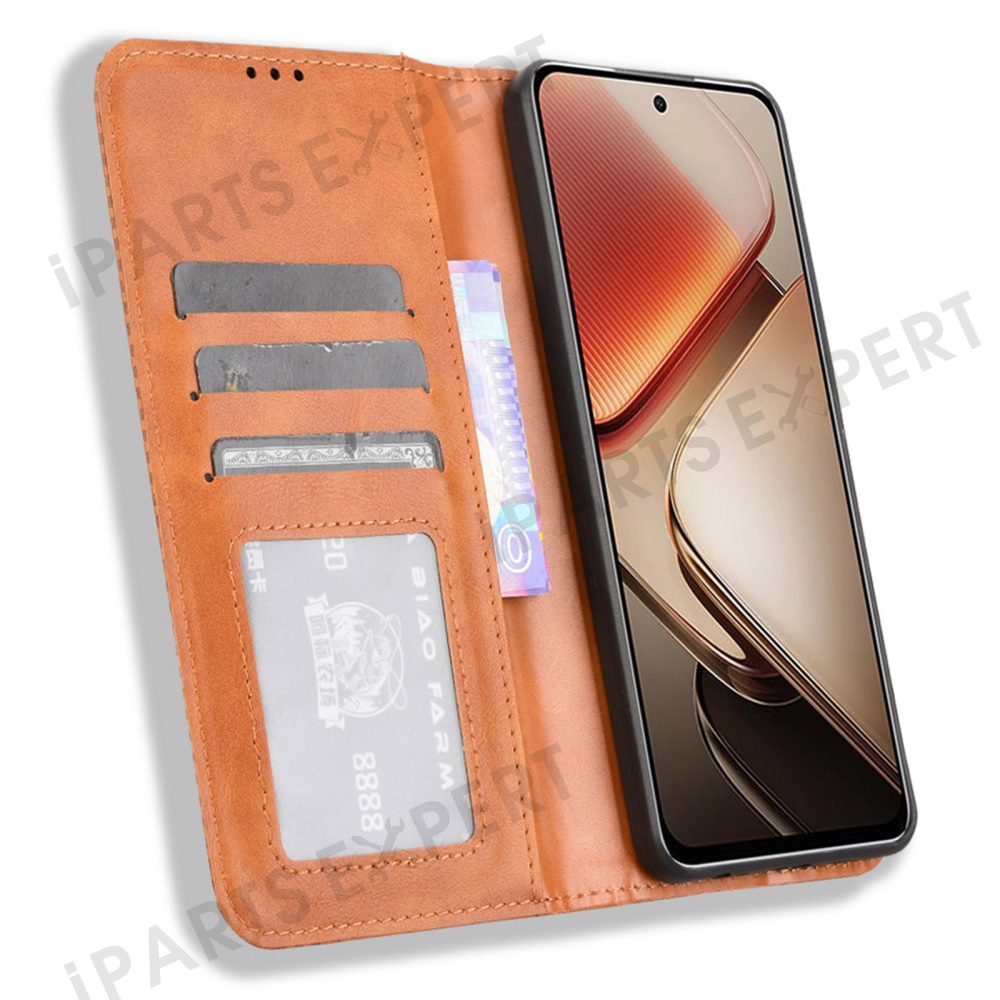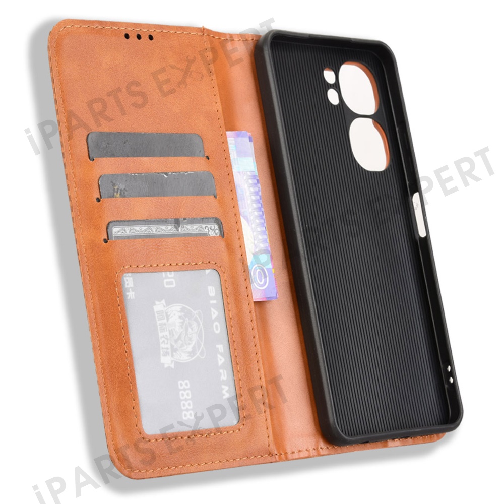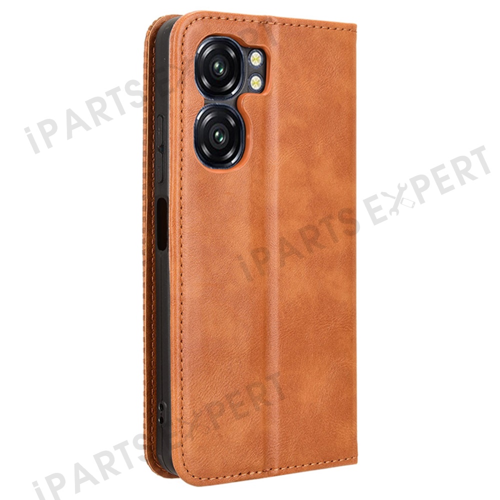 For Oukitel C58 Pro / C58 Leather Case Wallet Stand Retro Texture Phone Cover - Brown
