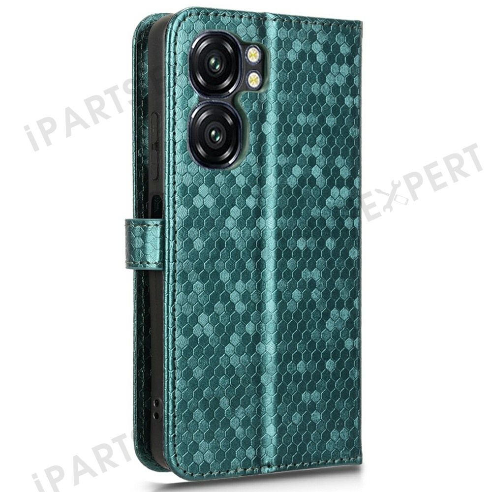 For Oukitel C58 Pro / C58 Wallet Case Dot Pattern Imprint PU Leather Phone Cover - Green