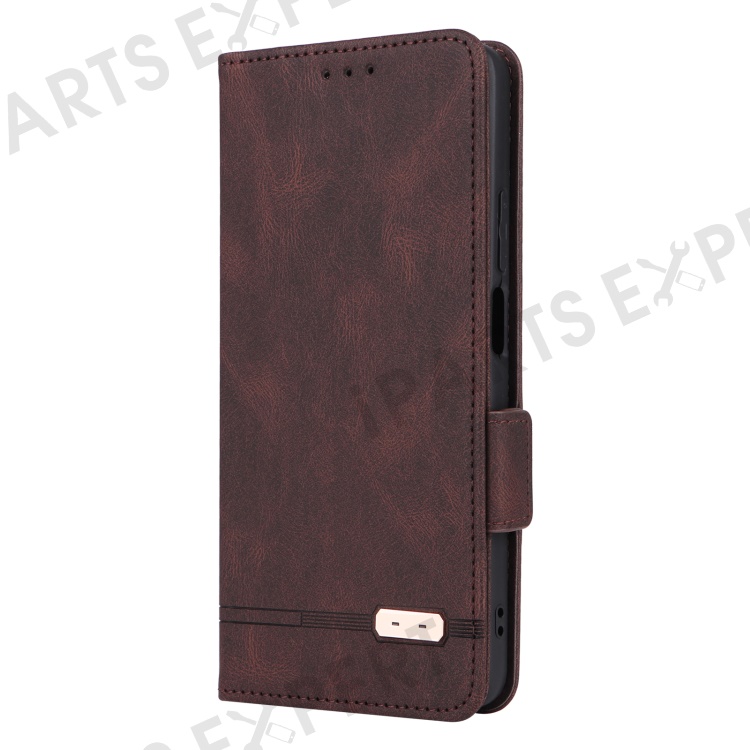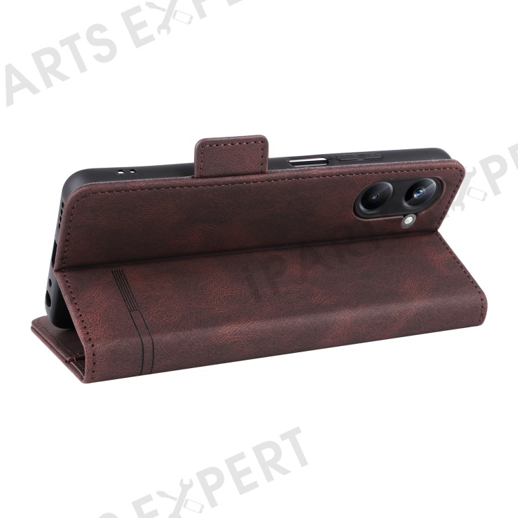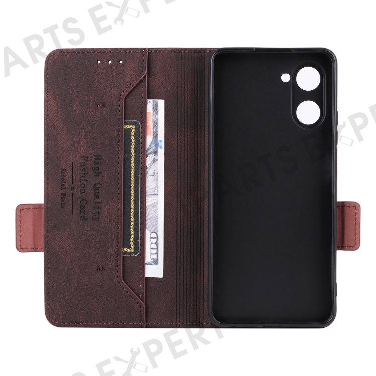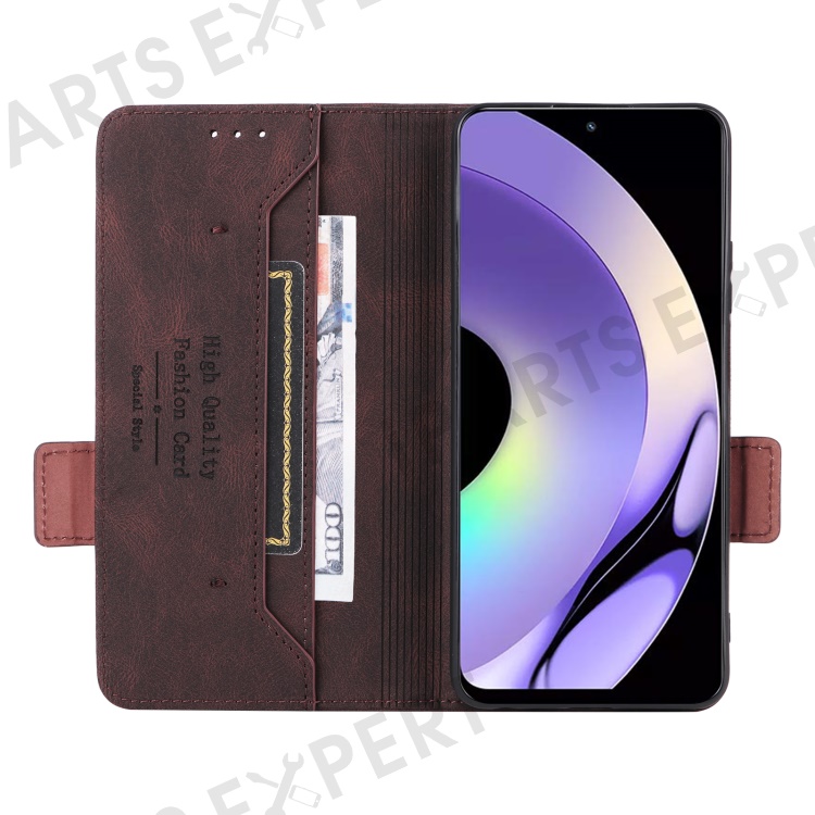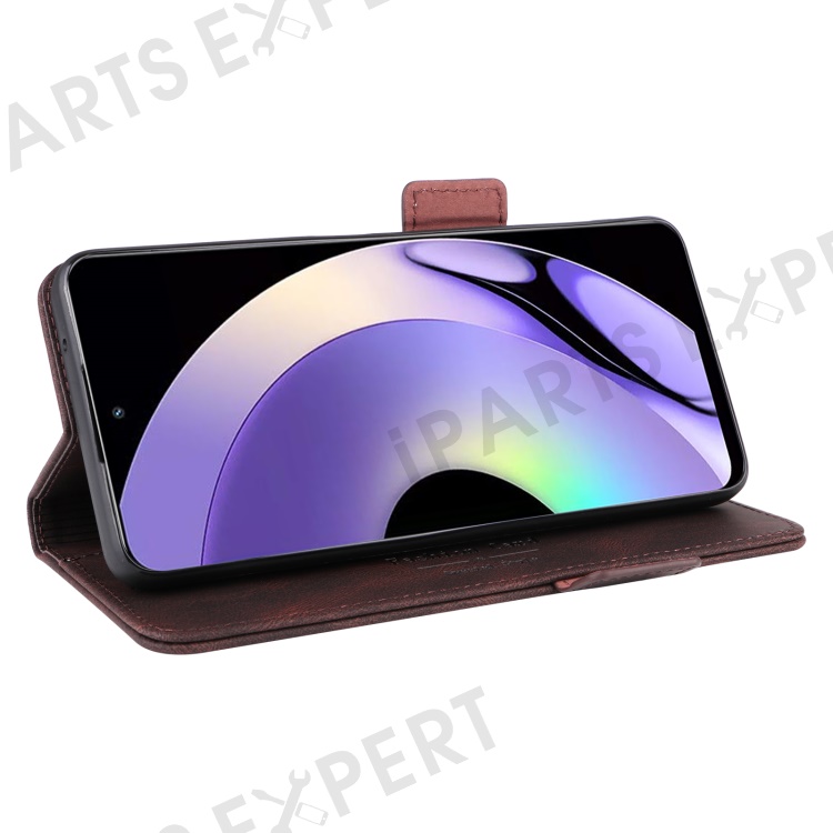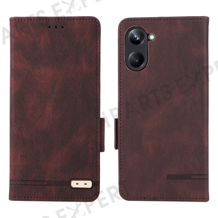 For Realme 10 Pro 5G Hardware Decor Dual Magnetic Clasp Anti-scratch Phone Cover Wallet Stand Anti-drop PU Leather Phone Case - Coffee