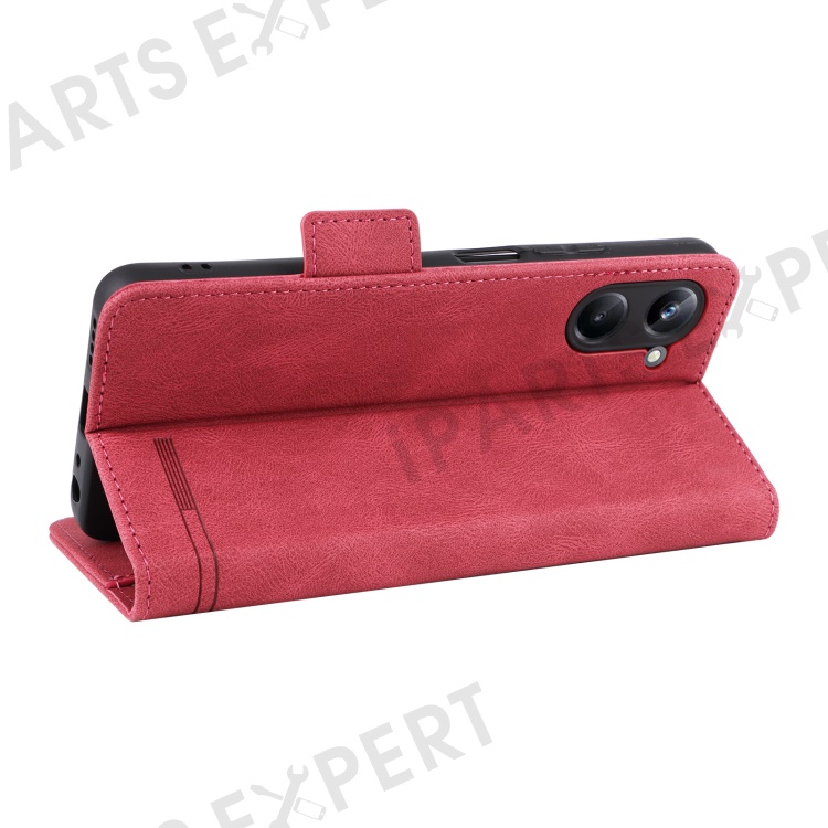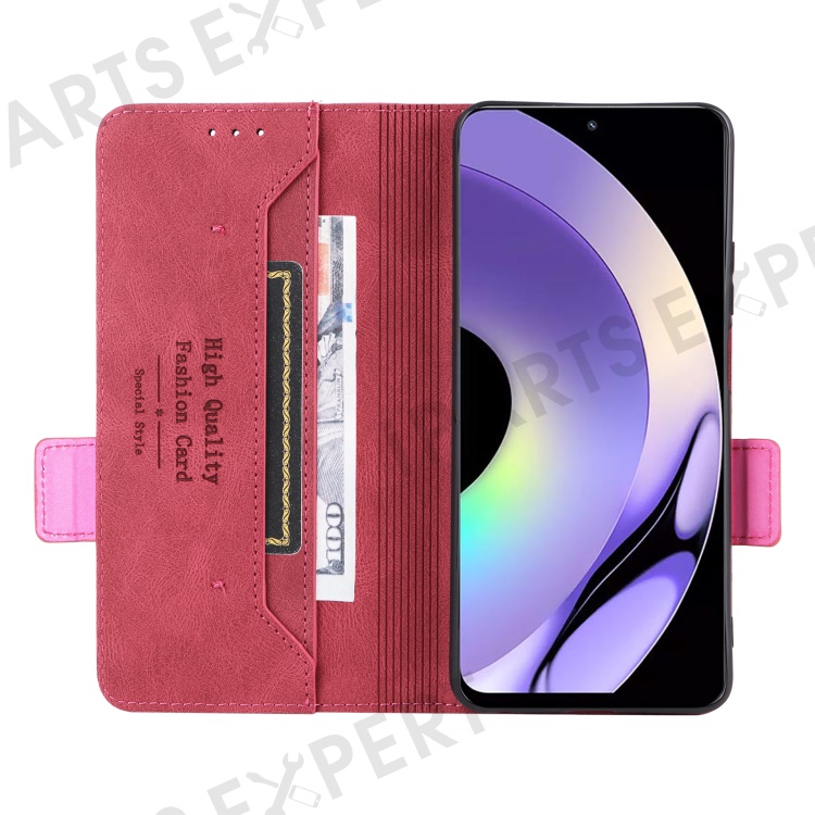 For Realme 10 Pro 5G Hardware Decor Dual Magnetic Clasp Anti-scratch Phone Cover Wallet Stand Anti-drop PU Leather Phone Case - Rose