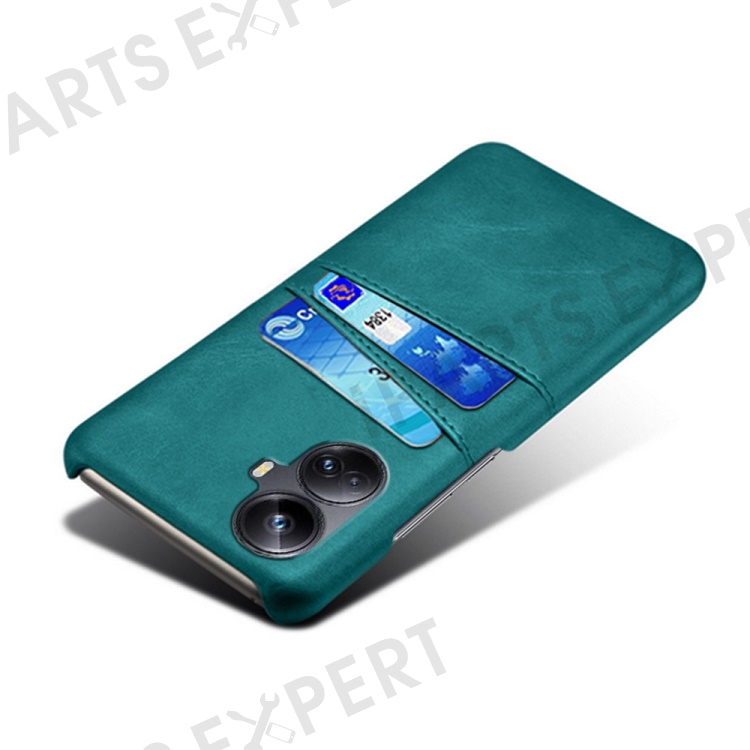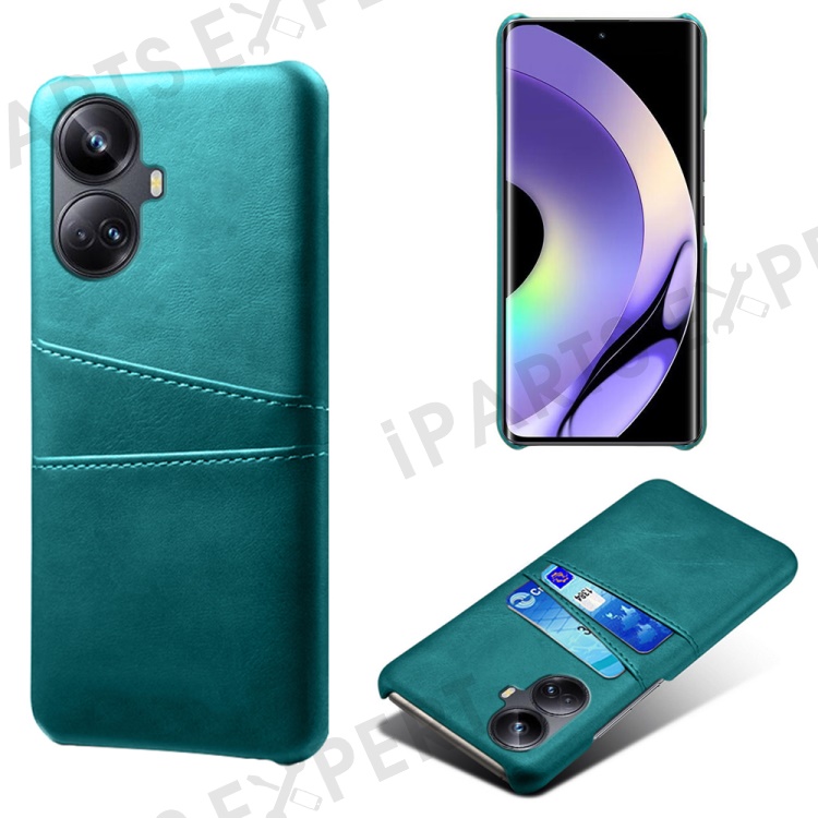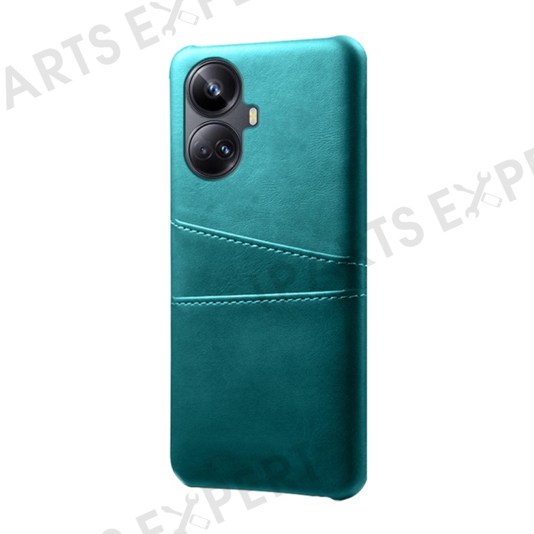 For Realme 10 Pro+ 5G PU Leather Coated Hard PC Anti-Scratch Phone Case Dual Card Slots Non-Slip Protective Back Cover - Green
